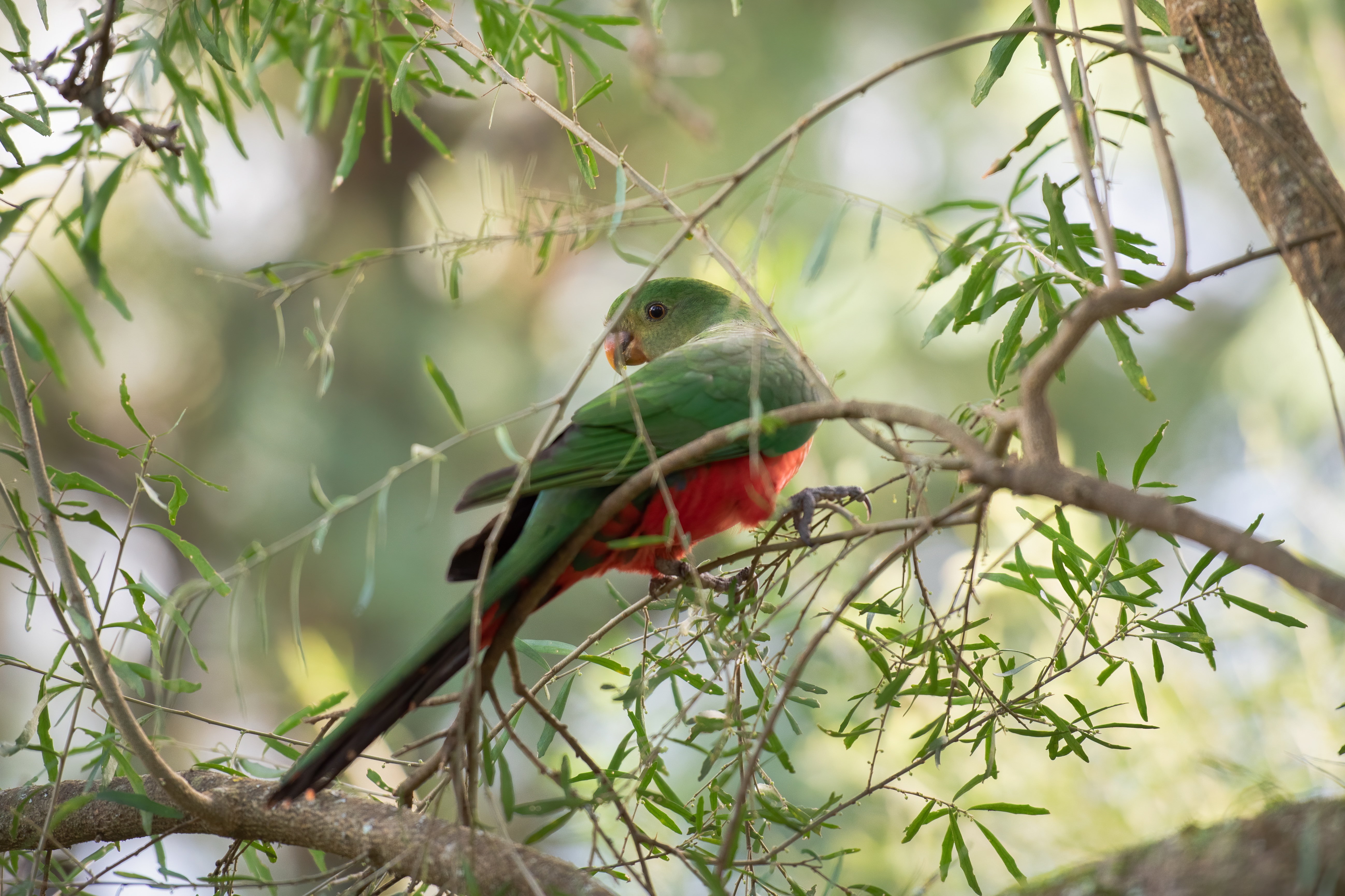 Зеленый попугай сидит на ветке дерева - 5193x3462