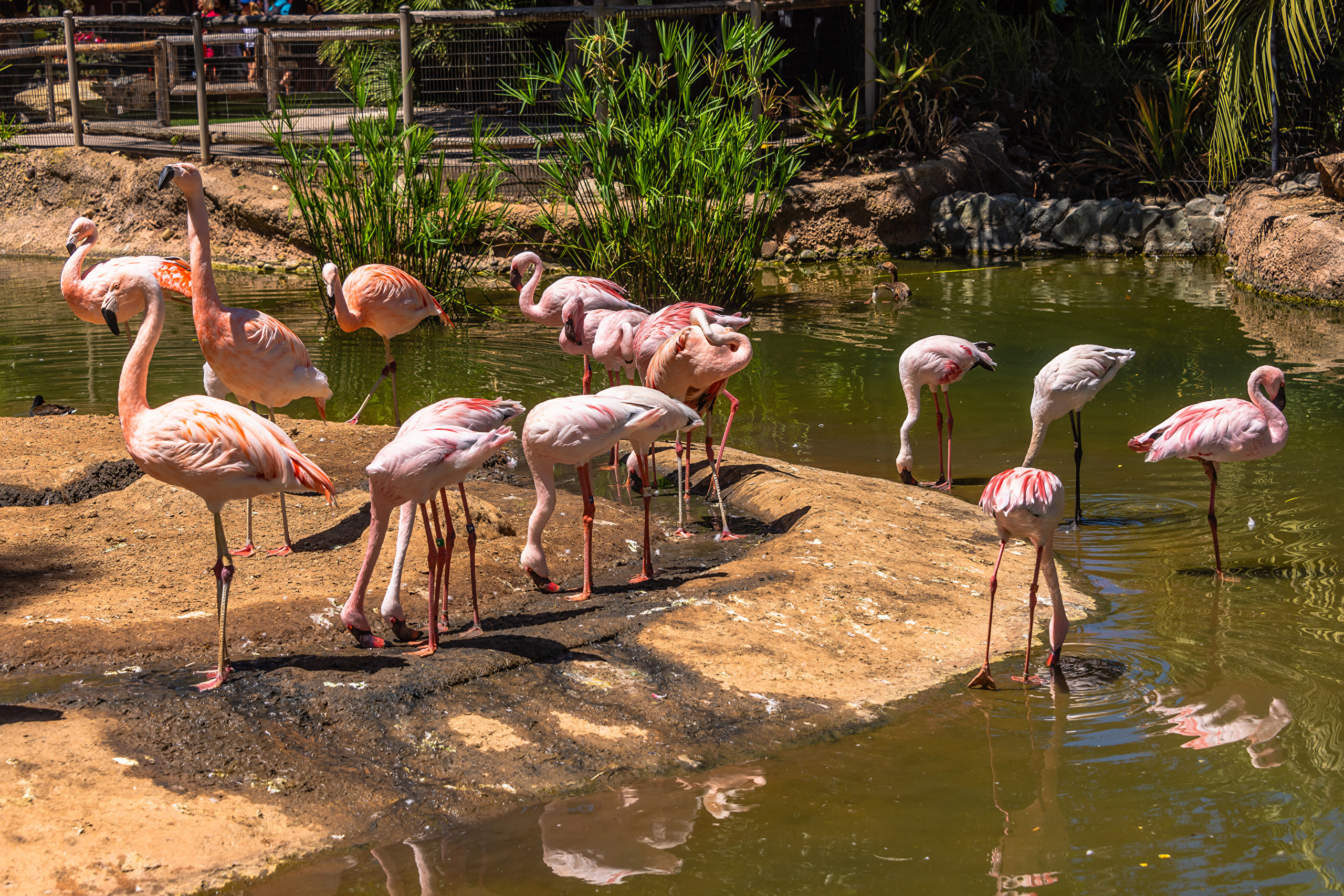 Розовые фламинго в зоопарке у пруда - 2560x1708