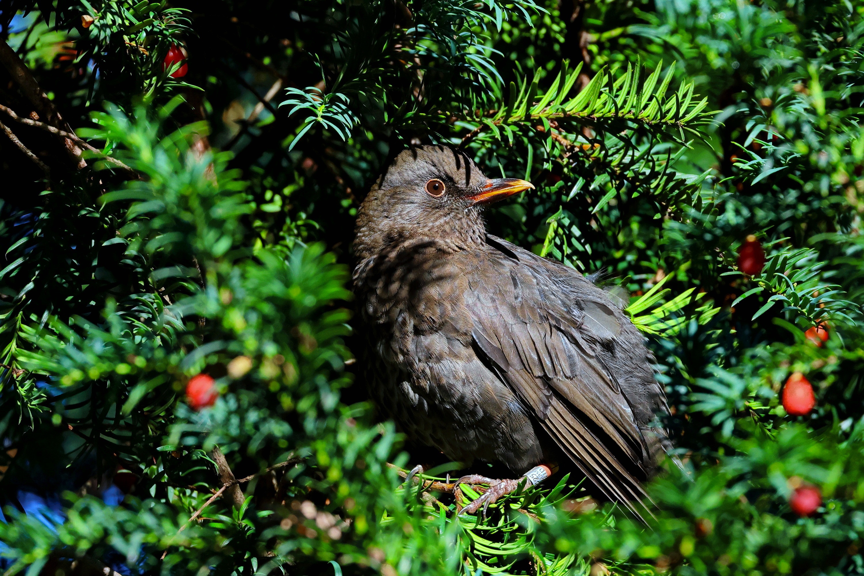 Черный обыкновенный дрозд в ветках - 3000x2000
