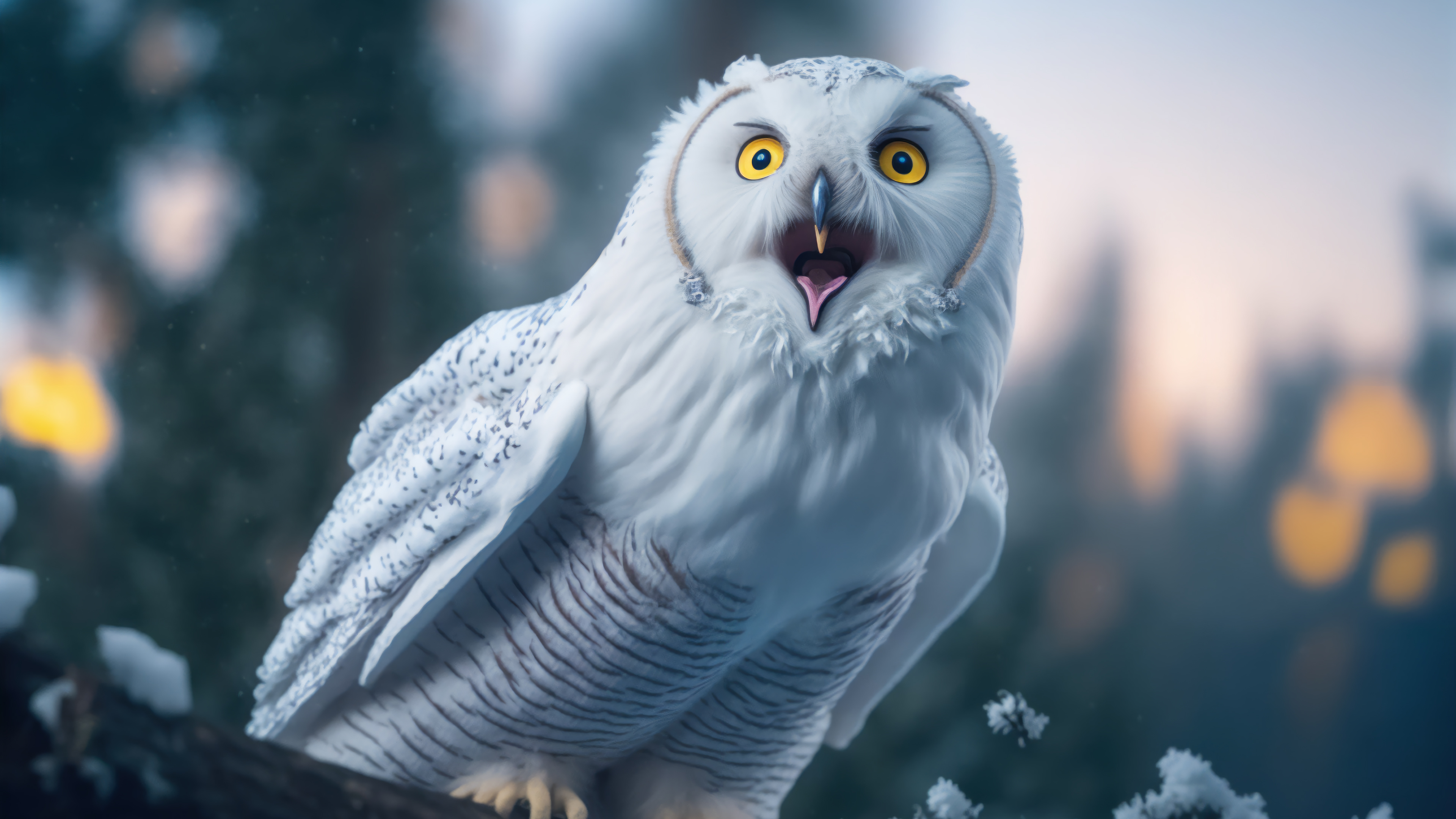 Большая белая сова с открытым клювом - 3840x2160