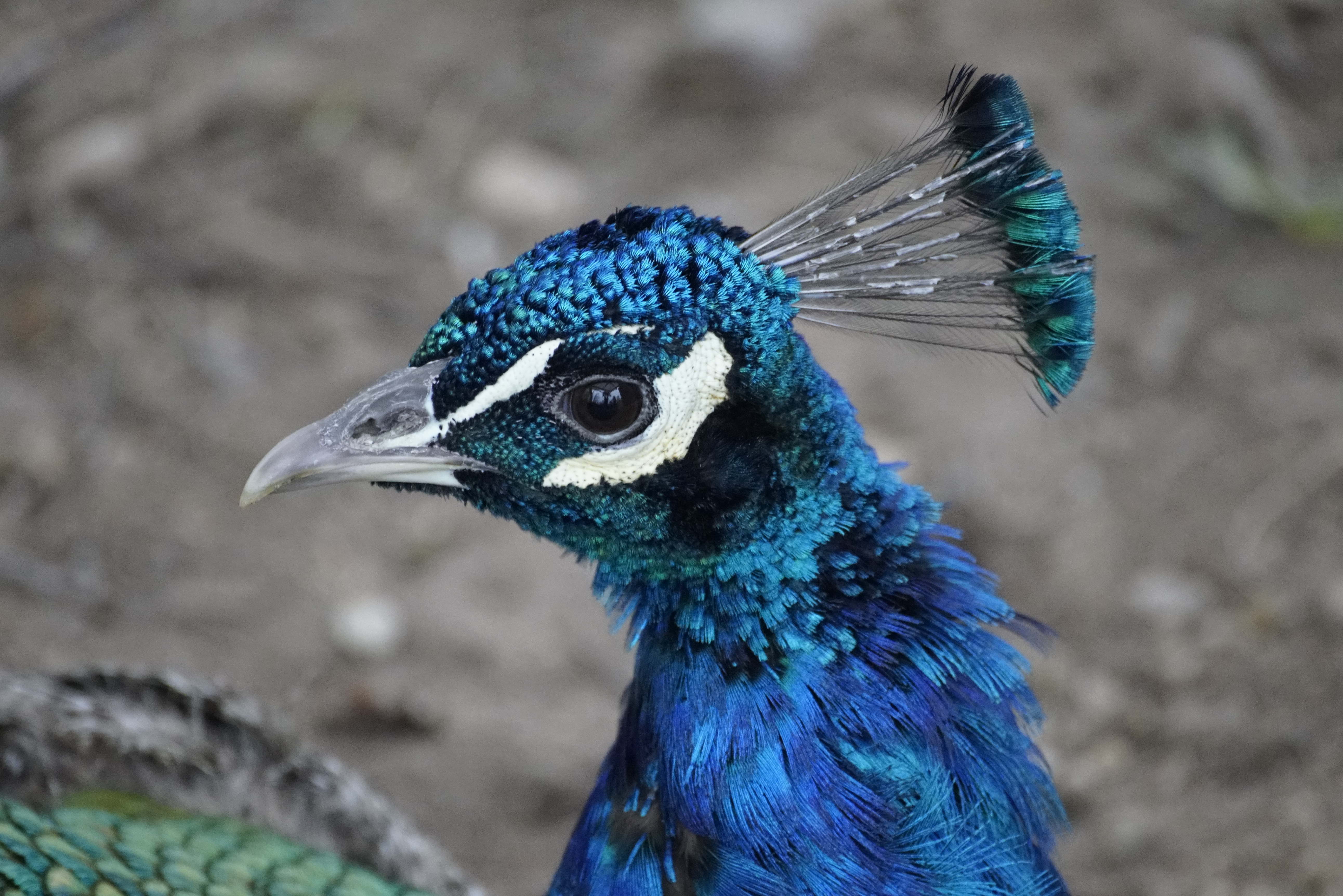 Синяя голова павлина крупным планом - 5168x3448