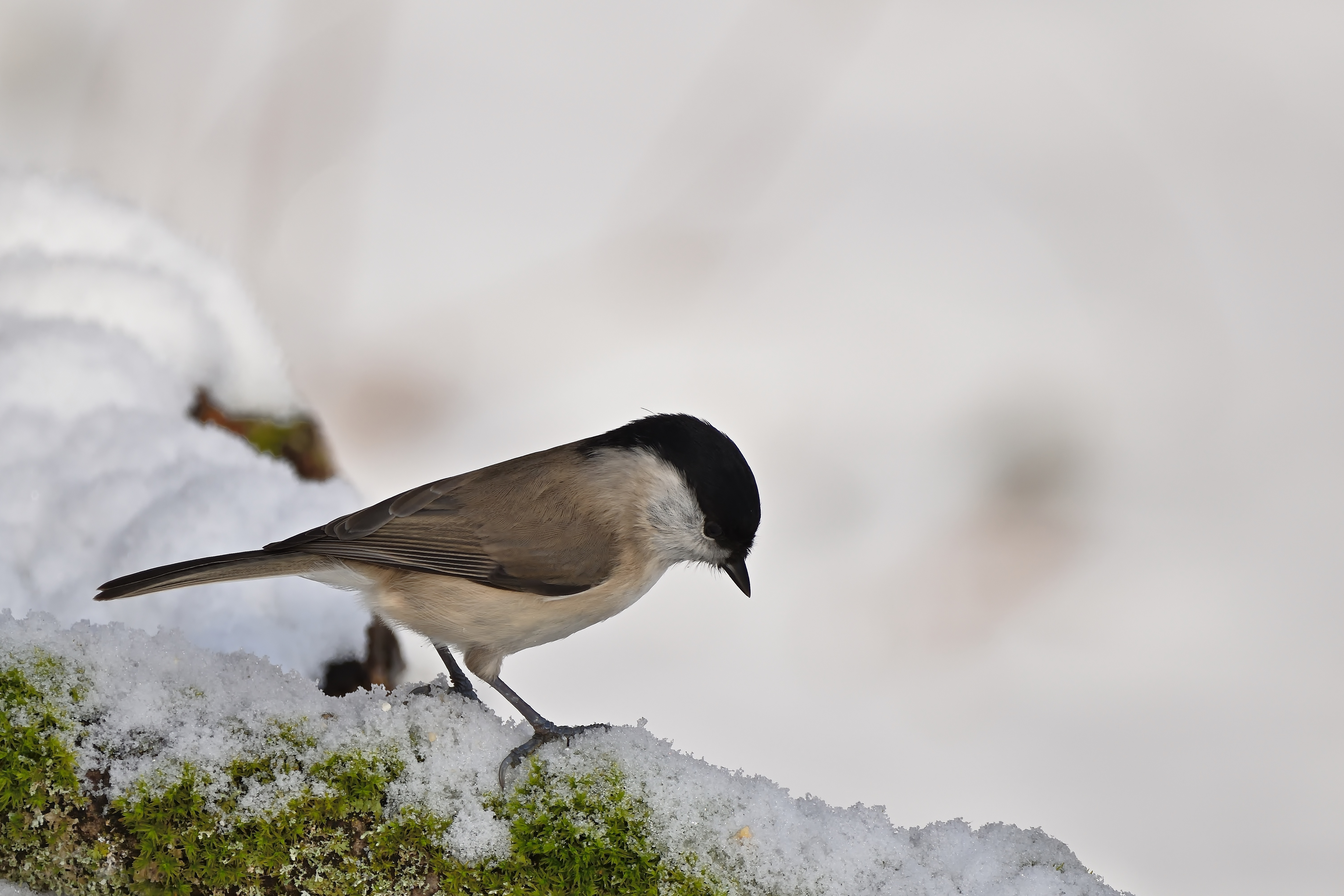Маленькая синица стоит на белом снегу - 6000x4000