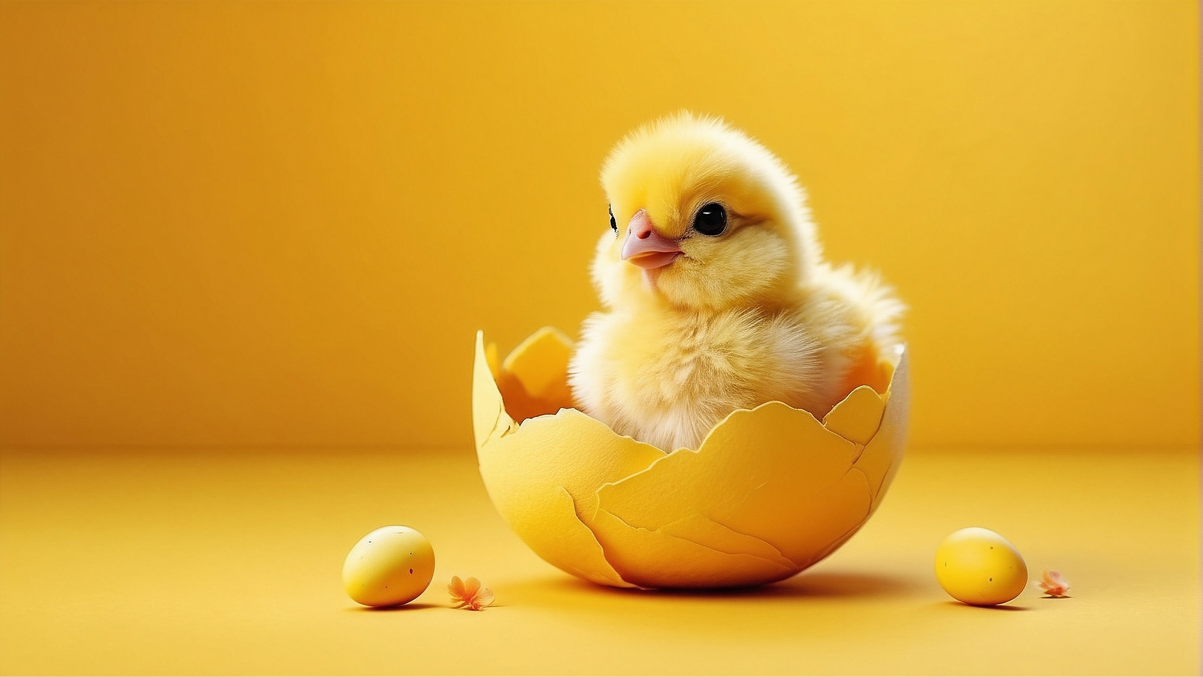 Маленький желтый цыпленок в скорлупе - 4000x2252