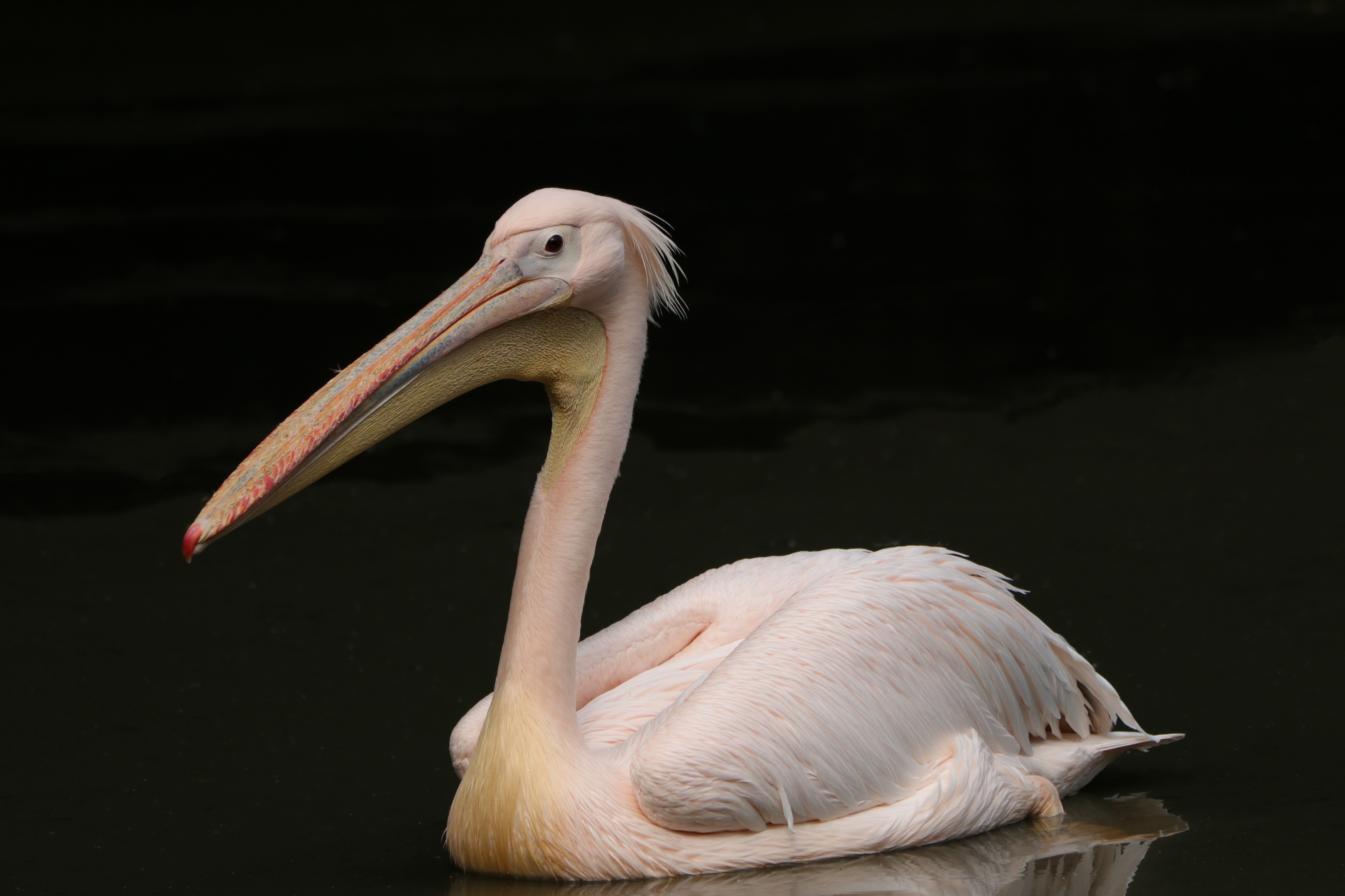 Розовый пеликан на черном фоне - 6000x4000