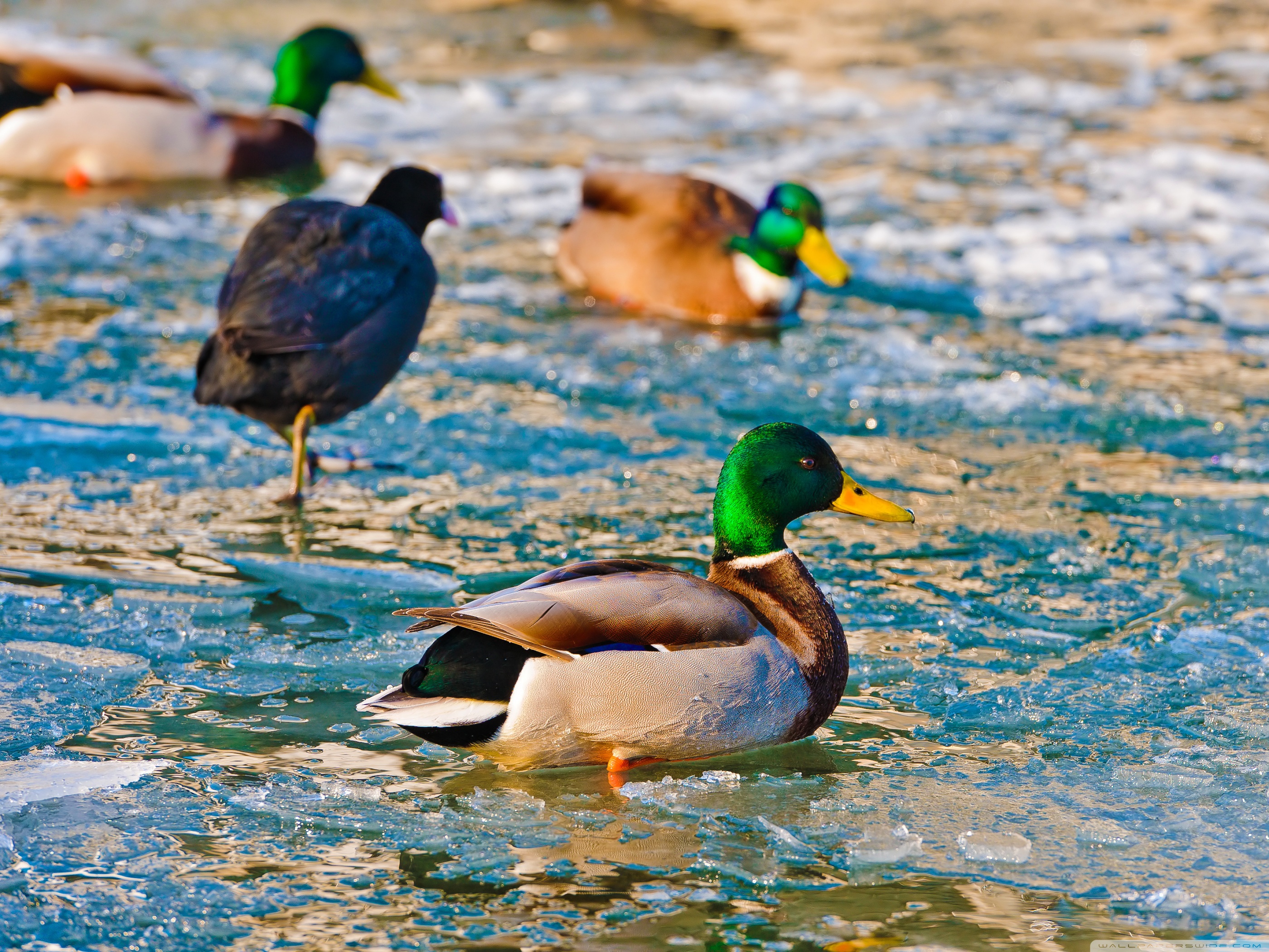 Обои: Утки в ледяной воде