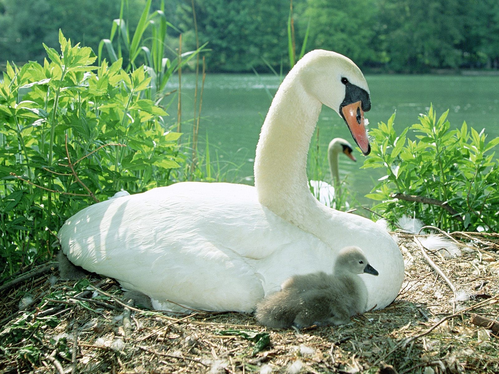 Лебедь с птенцом - 1600x1200