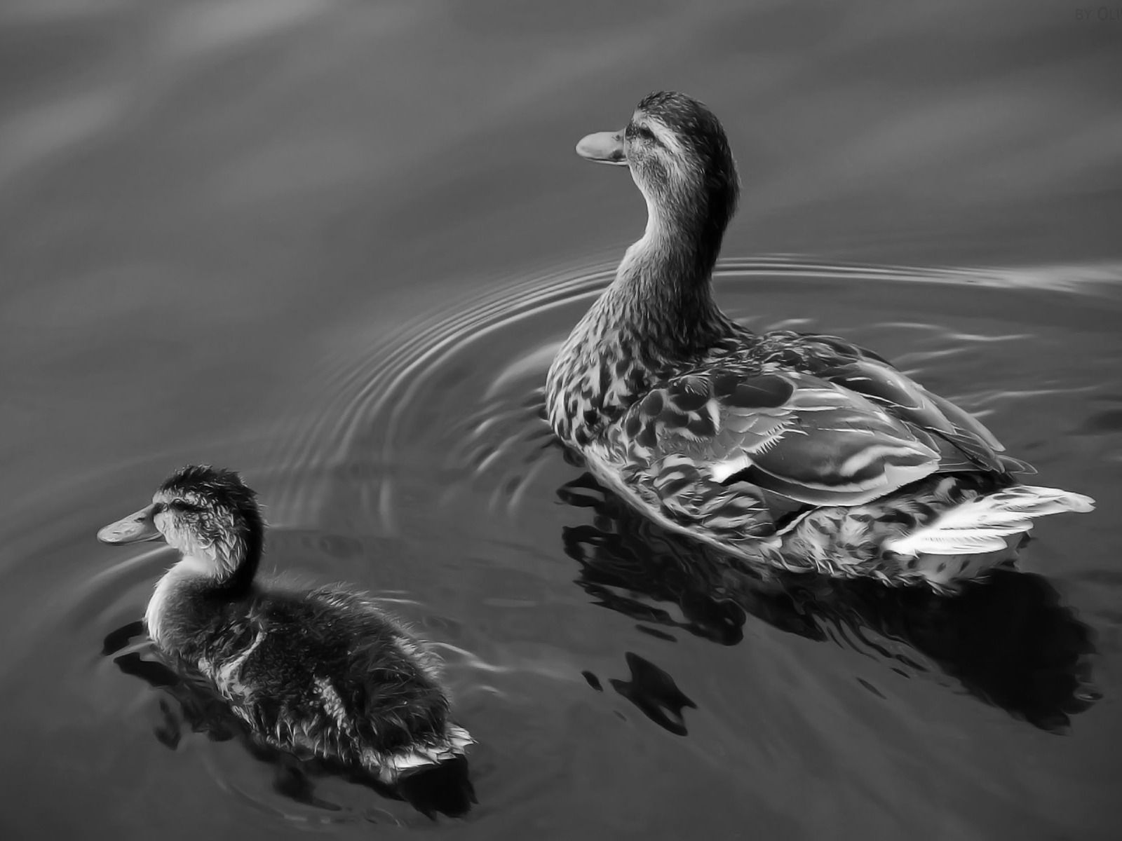 Утка с утенком - 1600x1200