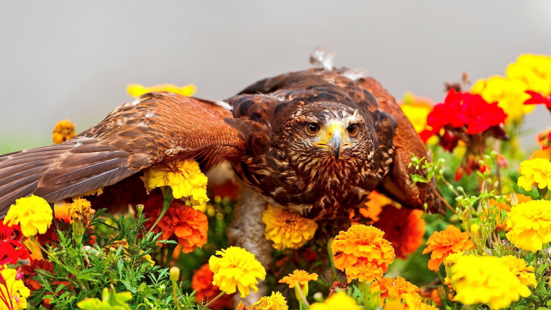 Ястреб сел на цветы - 1920x1080