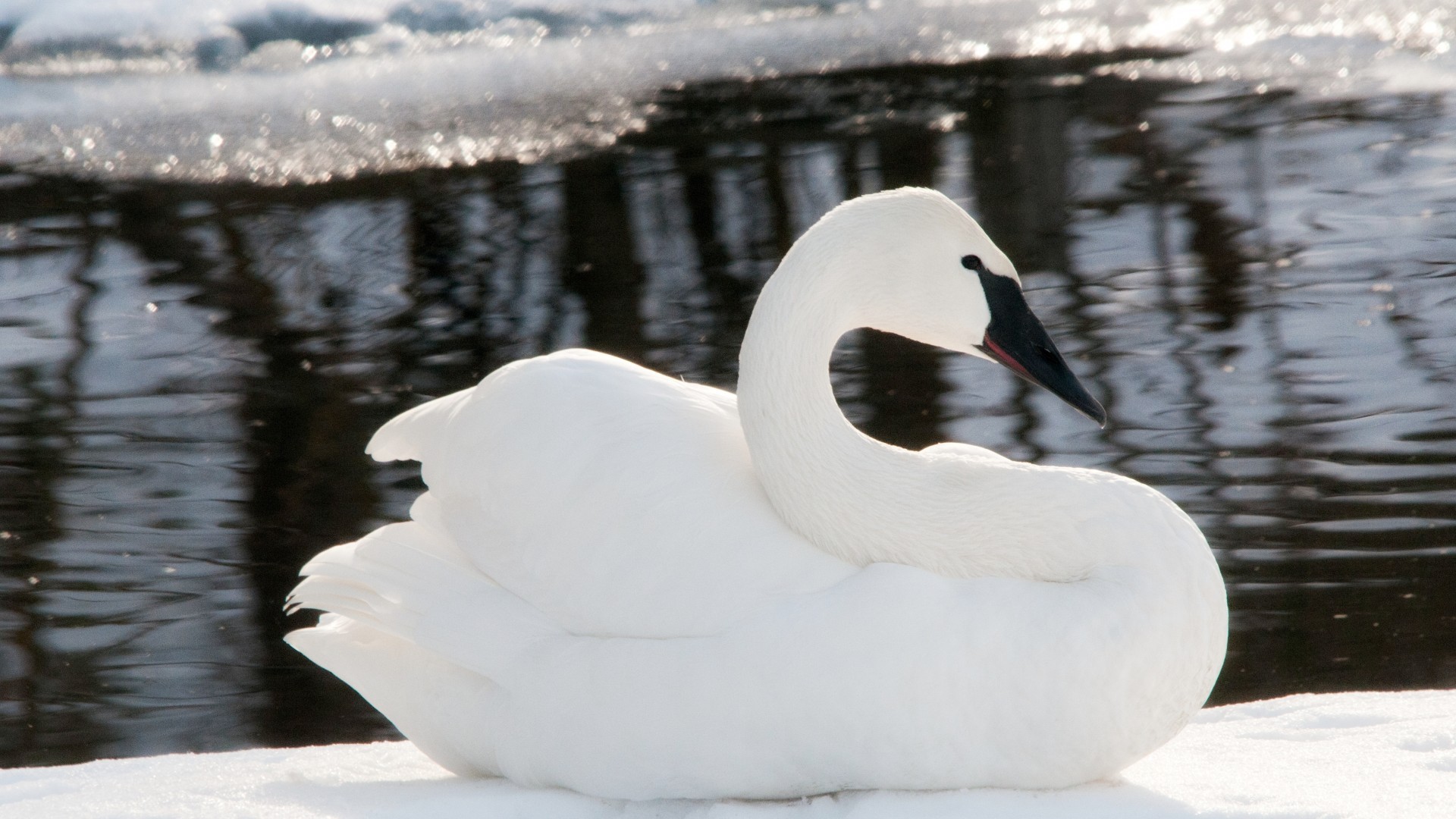 Черноклювый лебедь у воды - 1920x1080