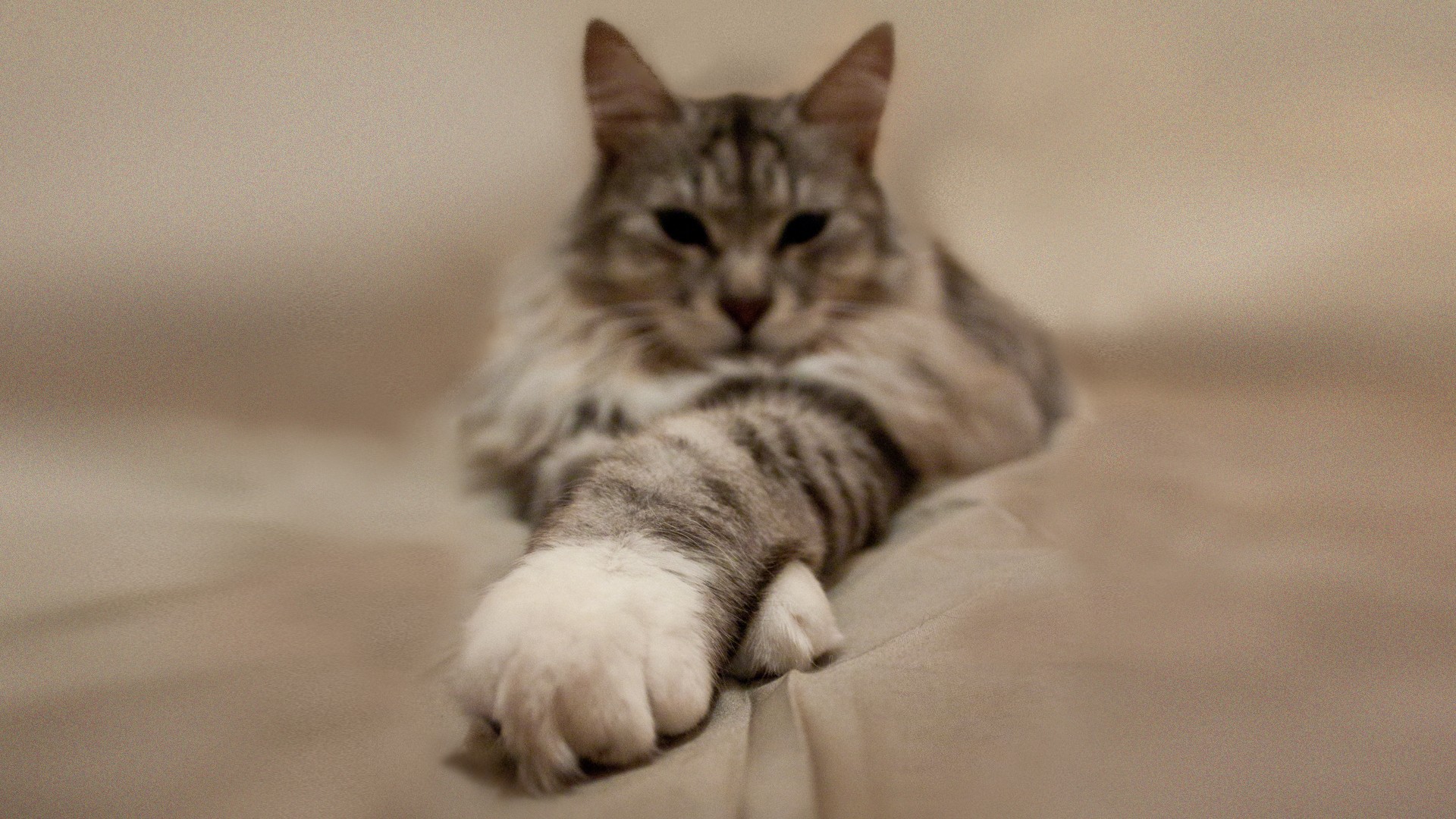 Пушистый кот вытянул лапы вперед - 1920x1080