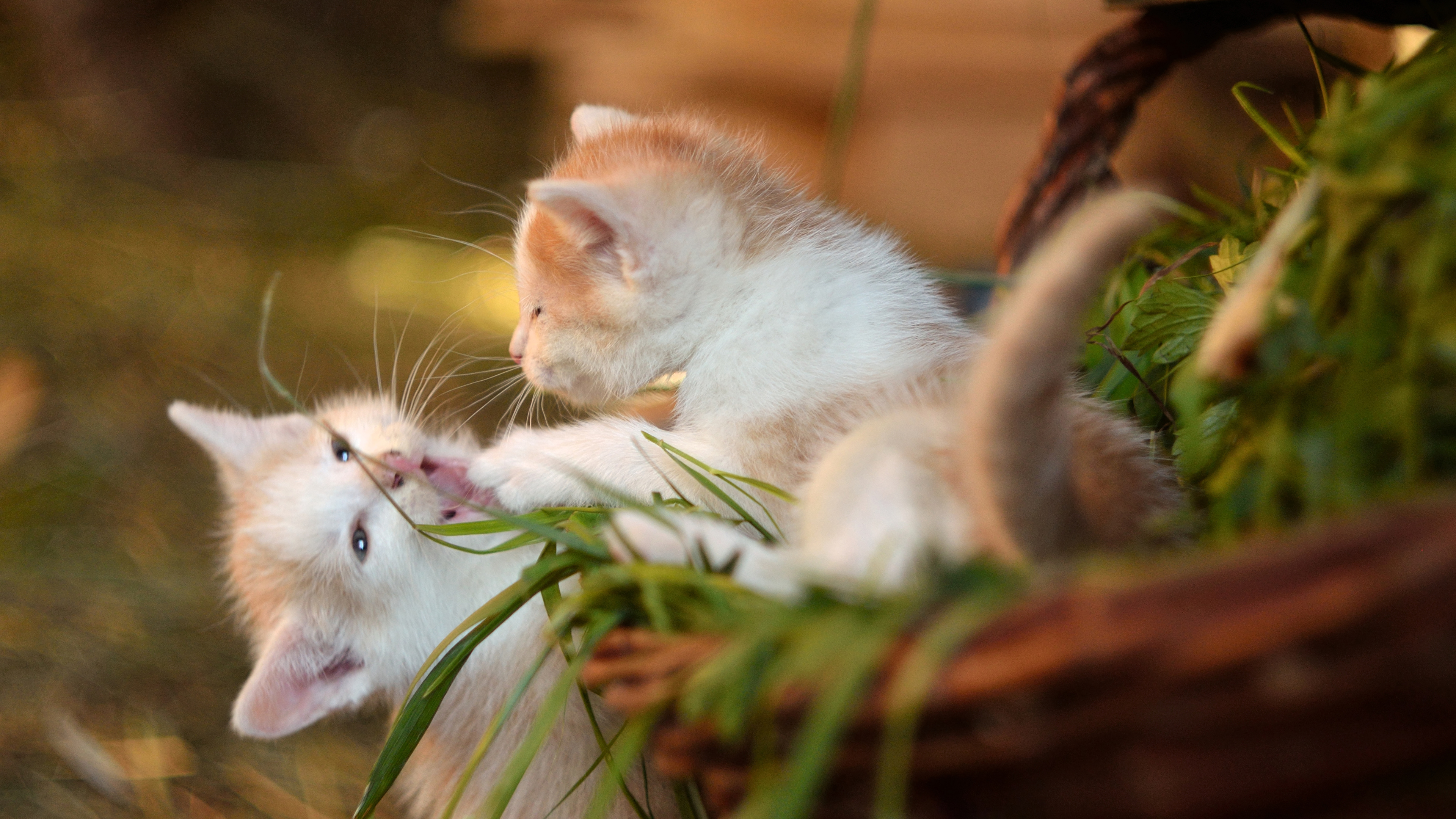 Два маленьких котенка играют - 3840x2160
