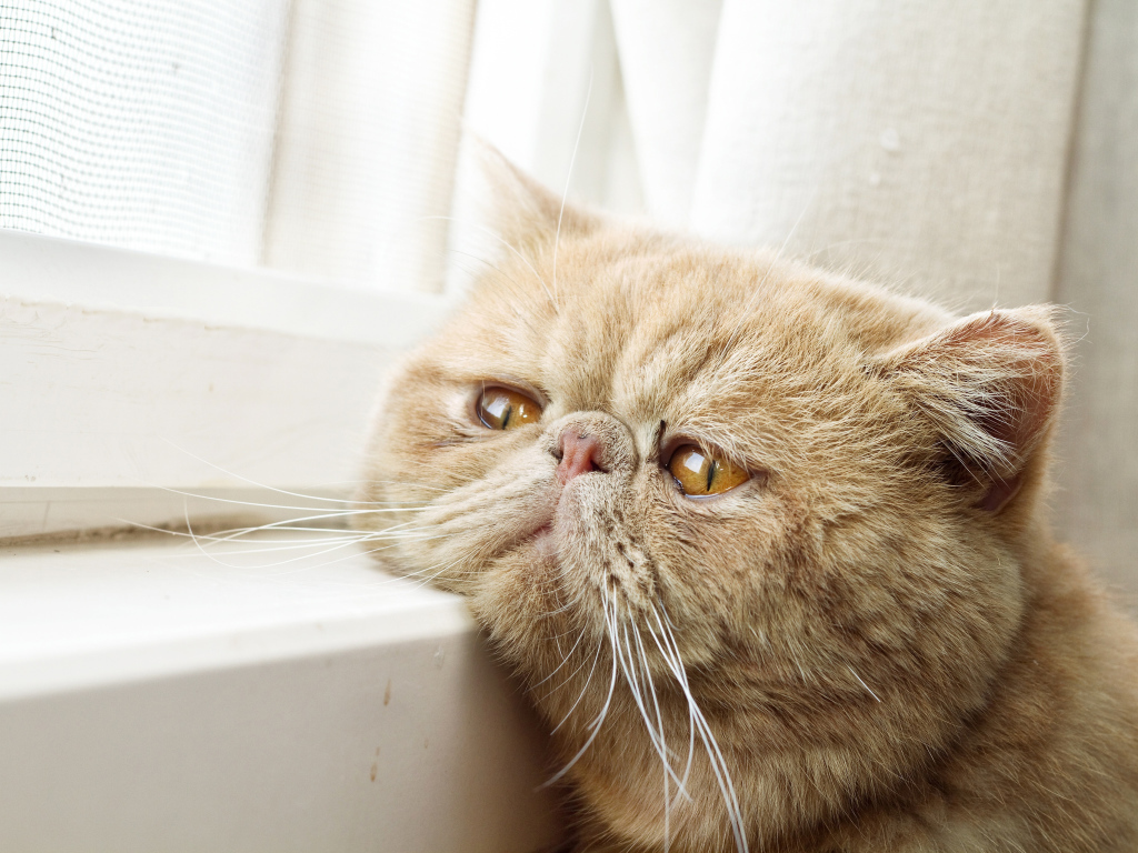 Грустный рыжий персидский кот смотрит в окно - 4203x2802