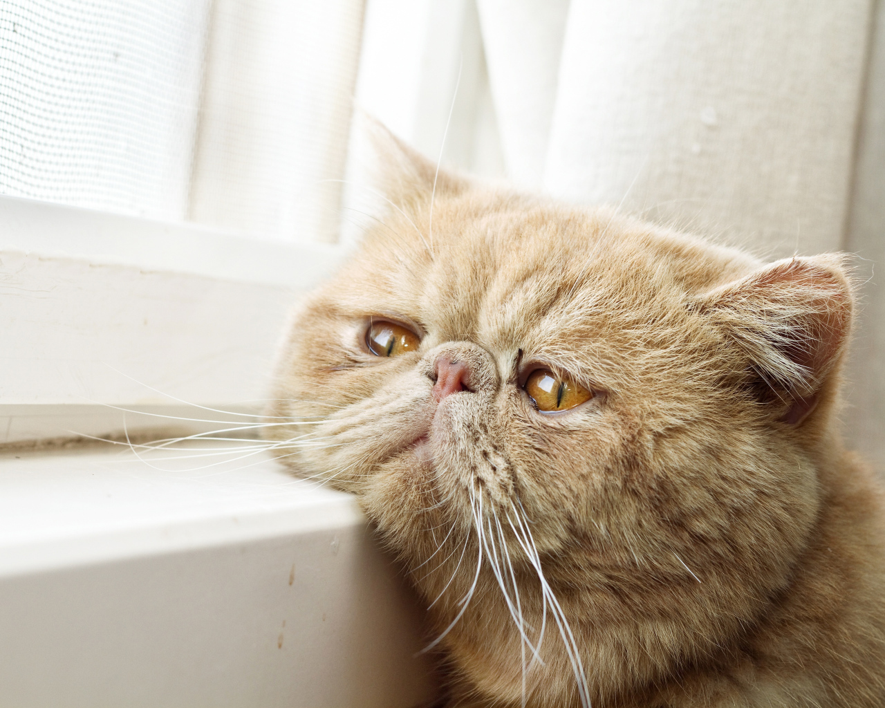 Грустный рыжий персидский кот смотрит в окно - 4203x2802