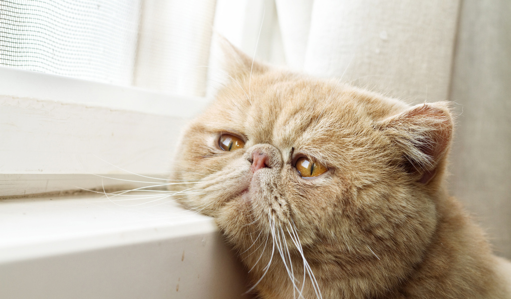 Грустный рыжий персидский кот смотрит в окно Обои для рабочего стола 1024x600