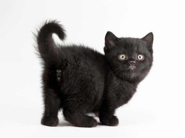 Обои: Красивый черный котенок на белом фоне