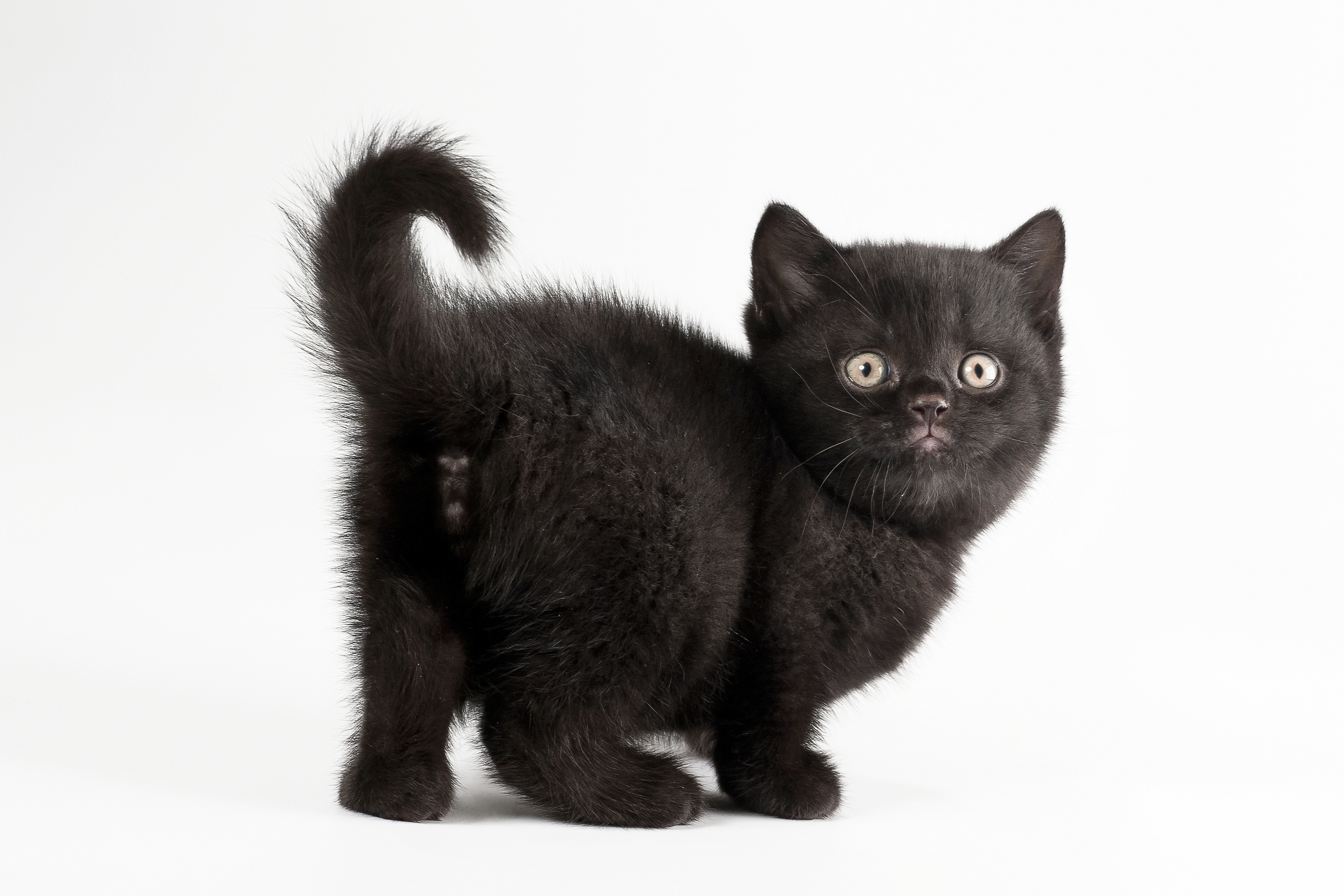 Красивый черный котенок на белом фоне - 7200x4800