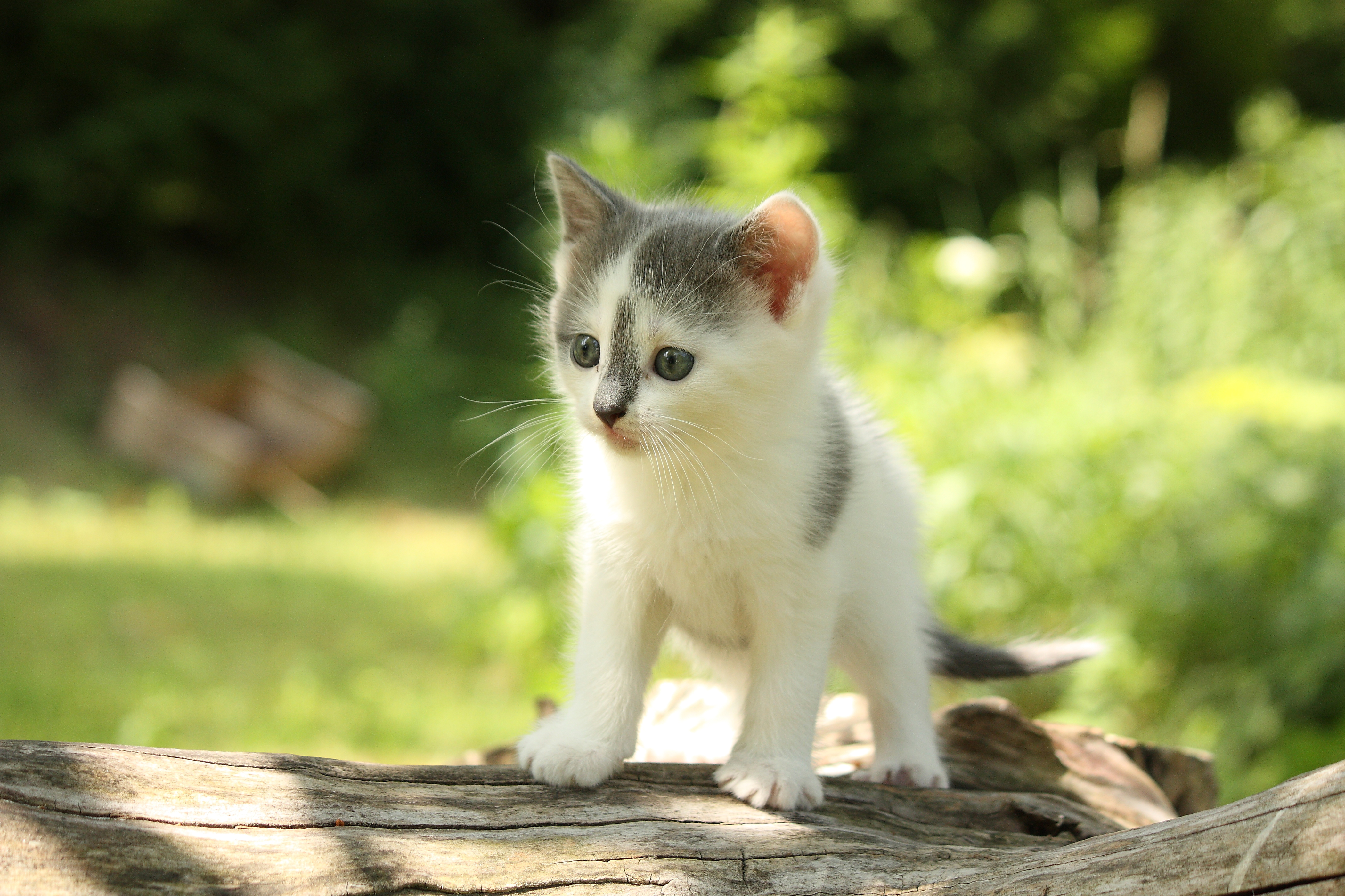 Милый маленький котенок на деревянной колоде - 4200x2800