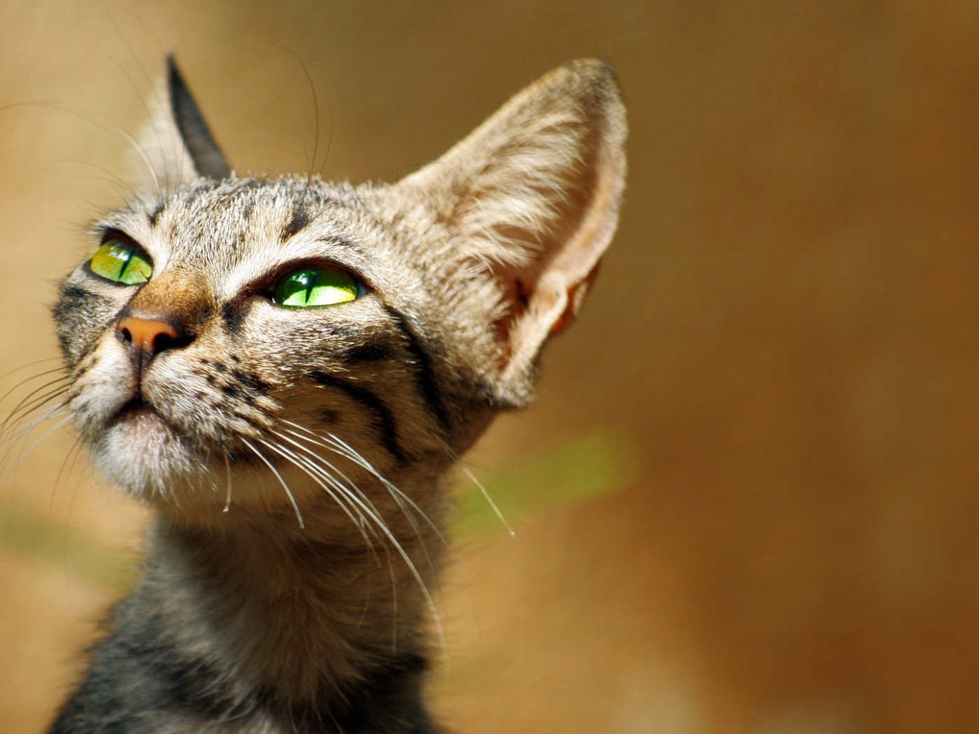 Хитрый зеленоглазый серый кот Обои для рабочего стола 1400x1050