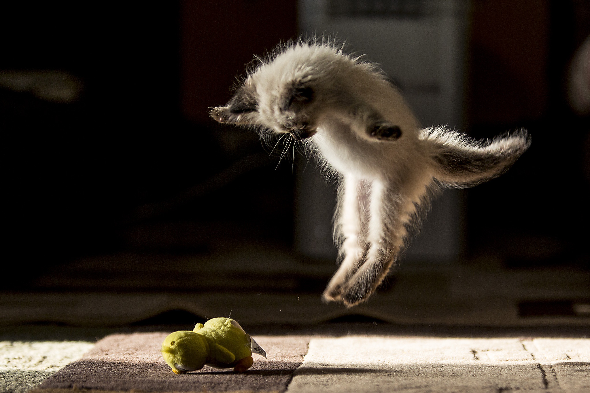 Маленький породистый котенок нападает на игрушку - 2048x1365
