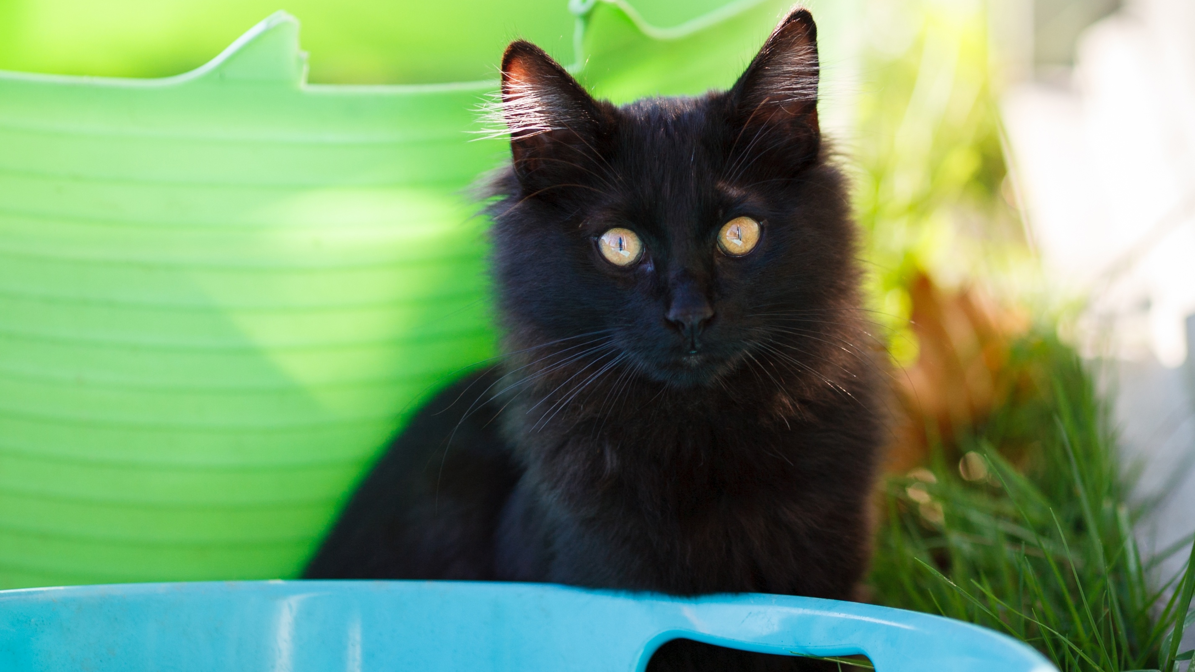 Красивый пушистый черный кот с желтыми глазами - 3840x2160