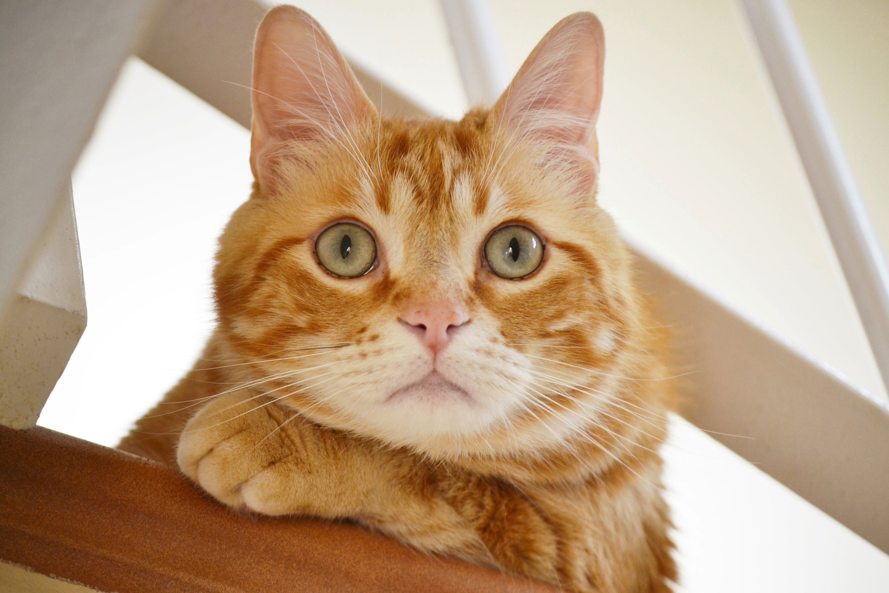 Полосатый рыжий кот смотрит на хозяина - 3000x2000