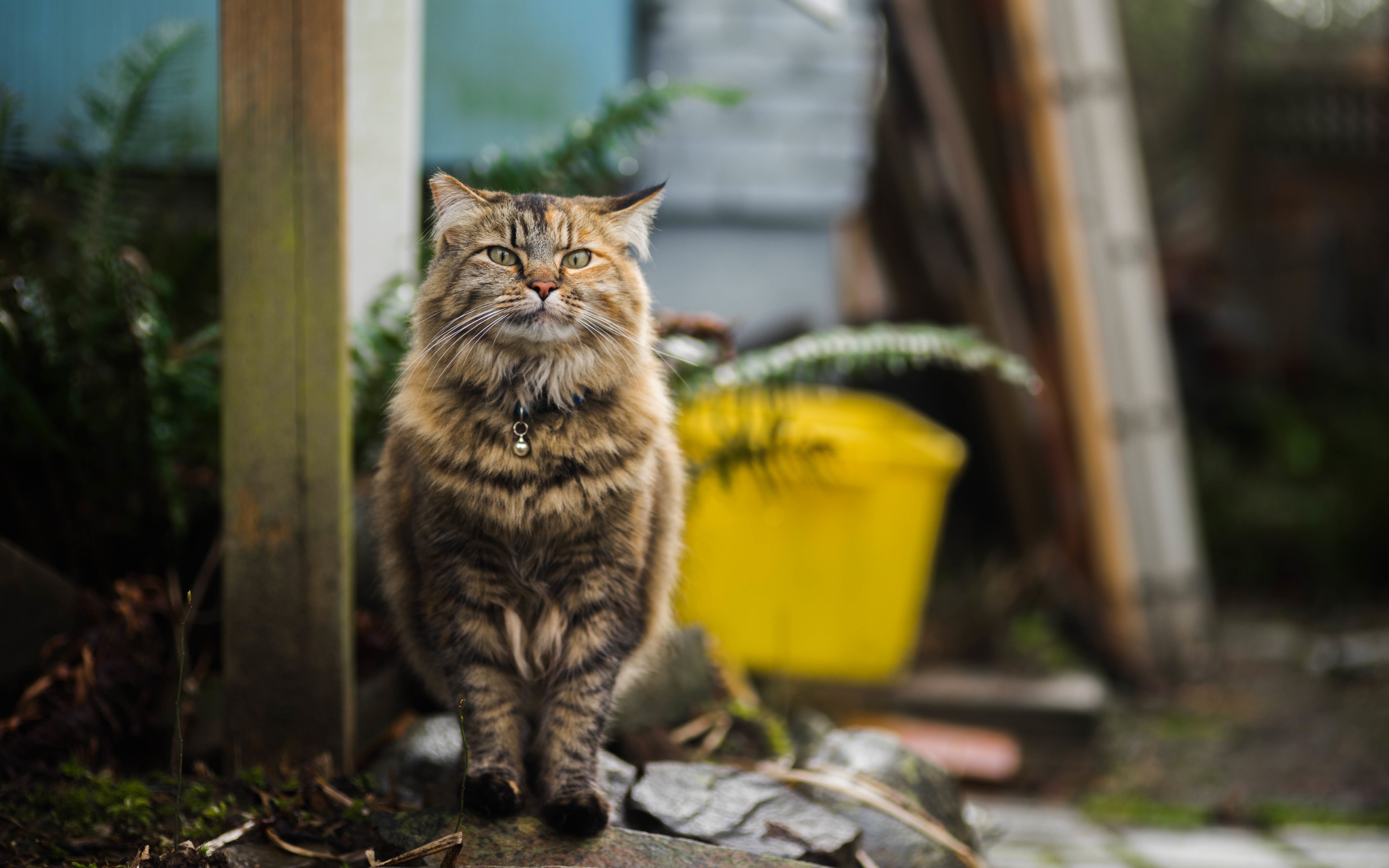 Серьезный серый кот с ошейником - 3840x2400
