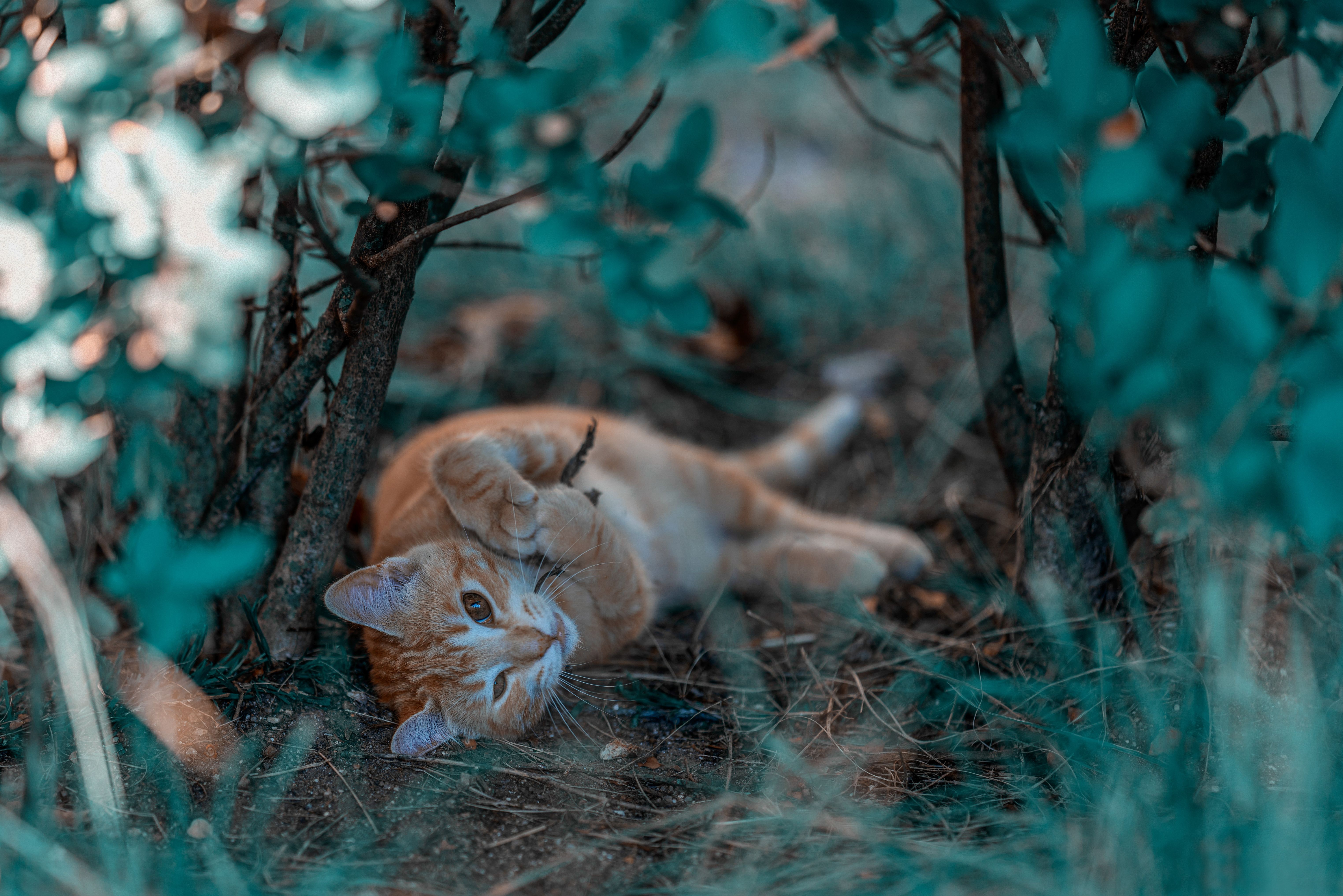 Маленький рыжий котенок в ветках - 6096x4069