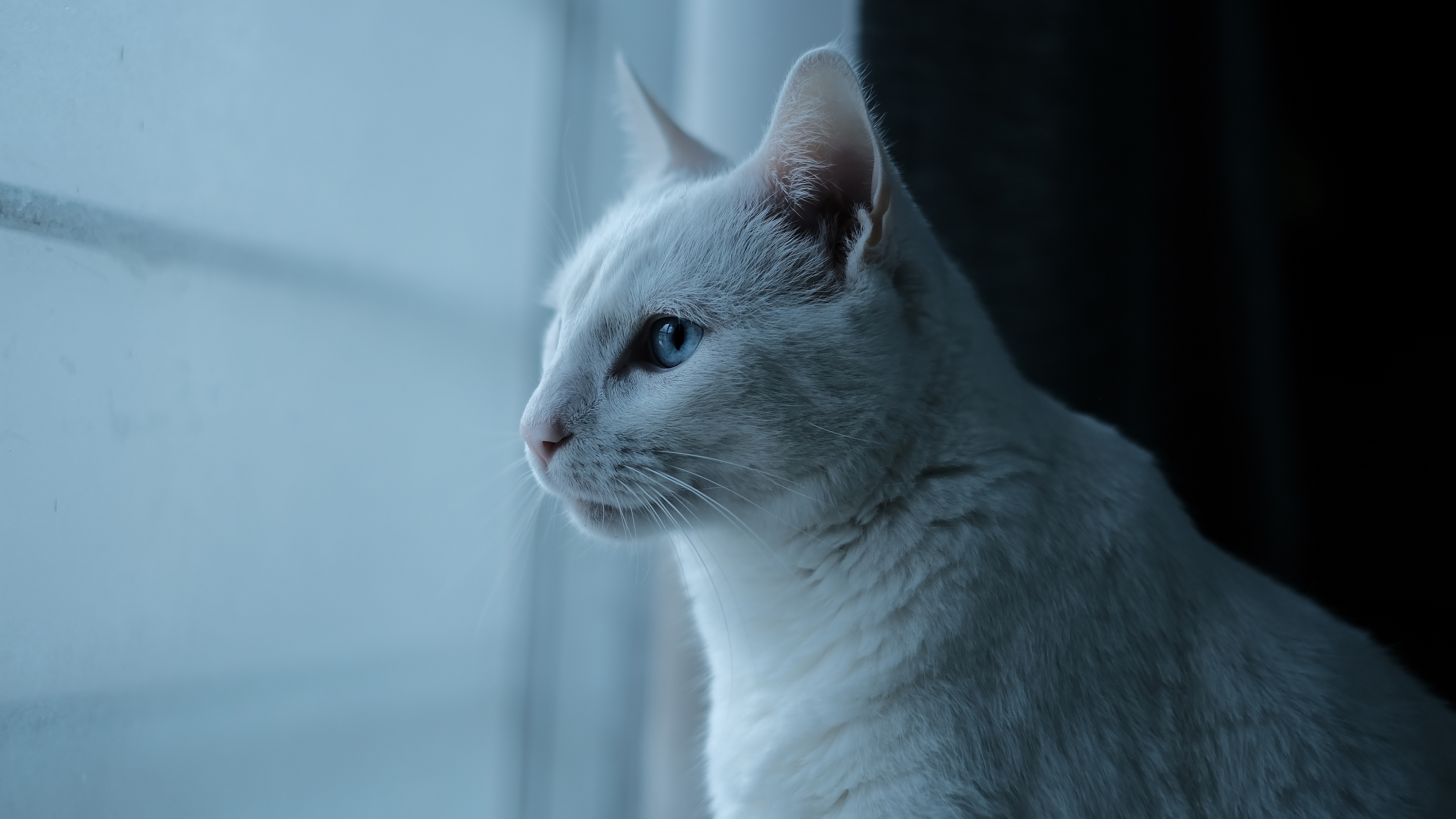 Красивая белая голубоглазая кошка у окна - 3840x2160