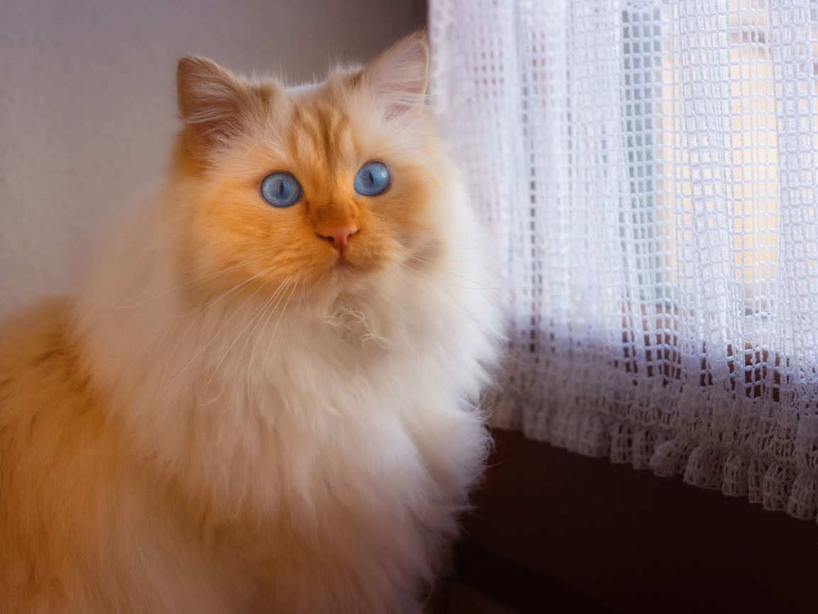 Пушистая голубоглазая кошка сидит у окна - 4200x2800