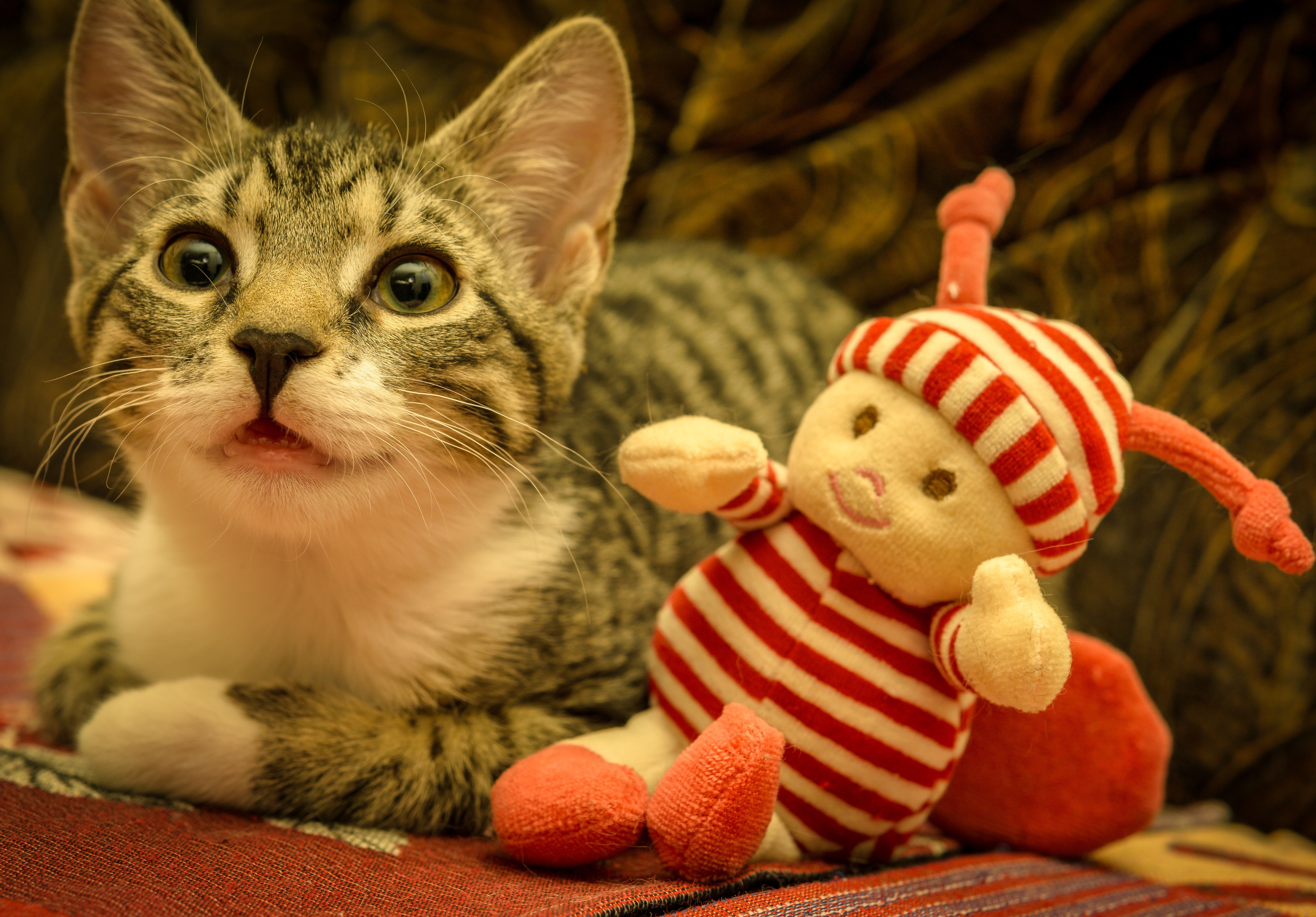 Маленький серый котенок с игрушкой - 5245x3655