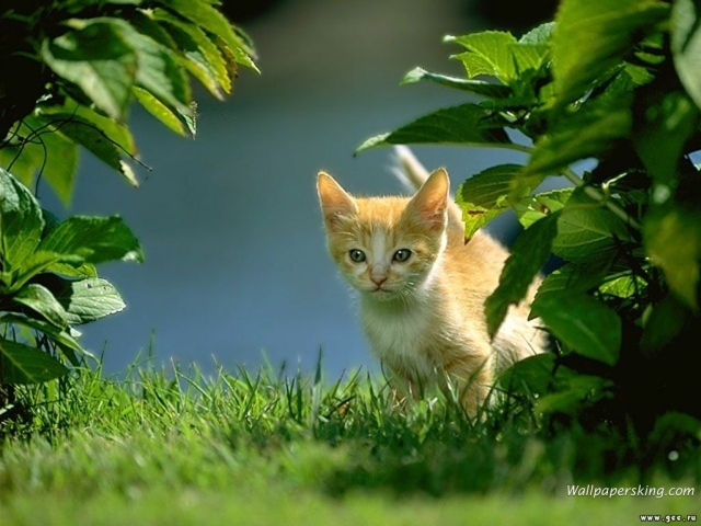 Рыжий котёнок на зелёной траве Обои для рабочего стола 640x480