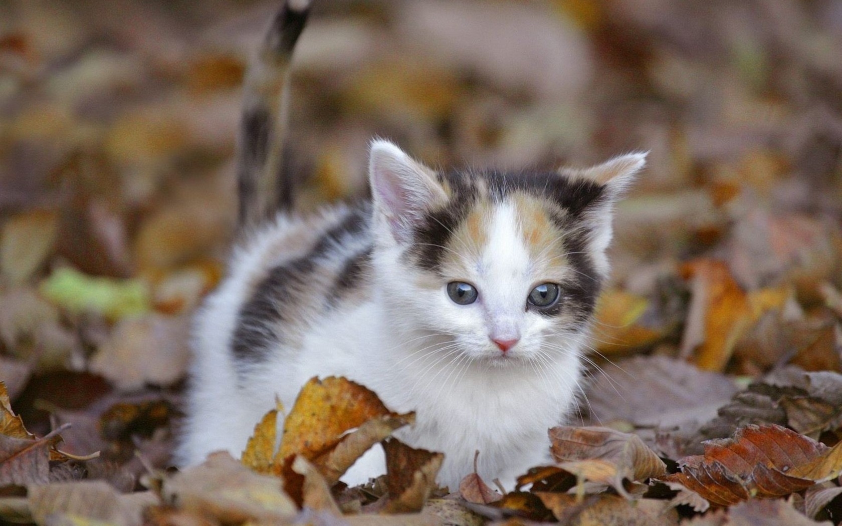 Киса среди листьев - 1680x1050