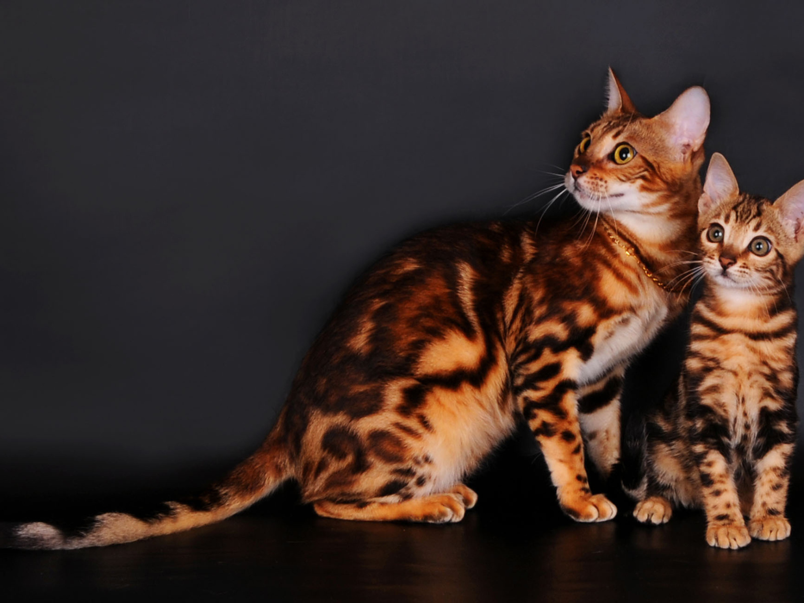 Бенгальские коты на сером фоне Обои для рабочего стола 1600x1200