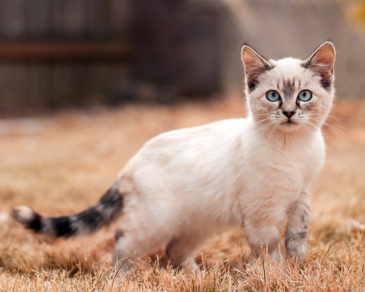 Маленький сиамский кот на засохшей траве - 1920x1280