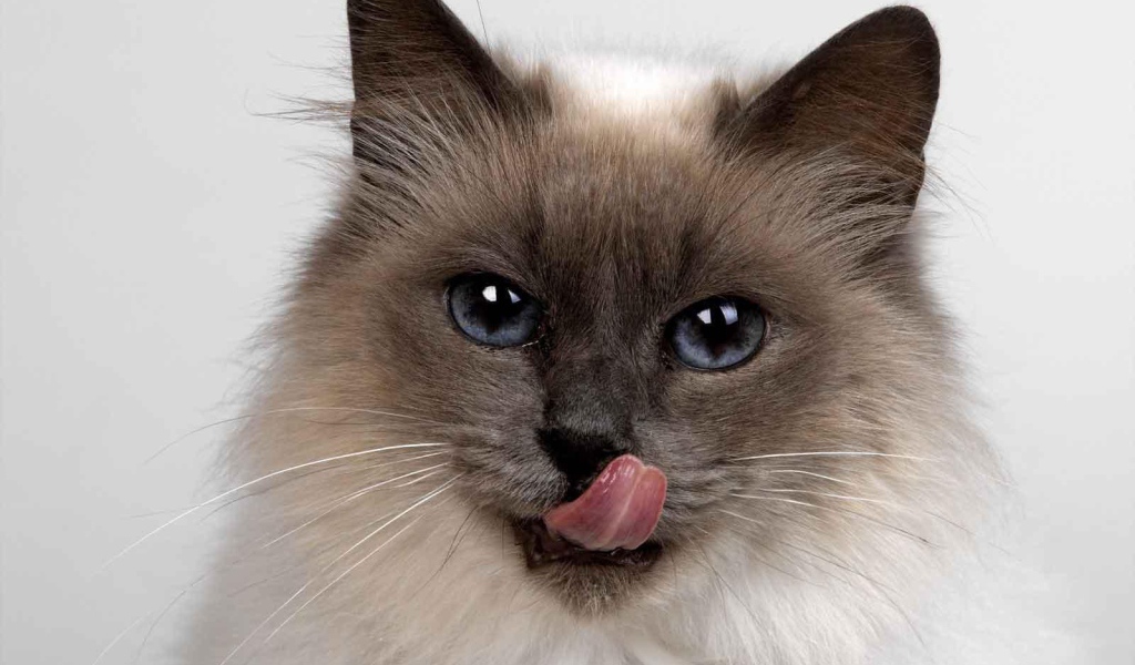 Пушистый сиамский кот облизывается Обои для рабочего стола 1024x600