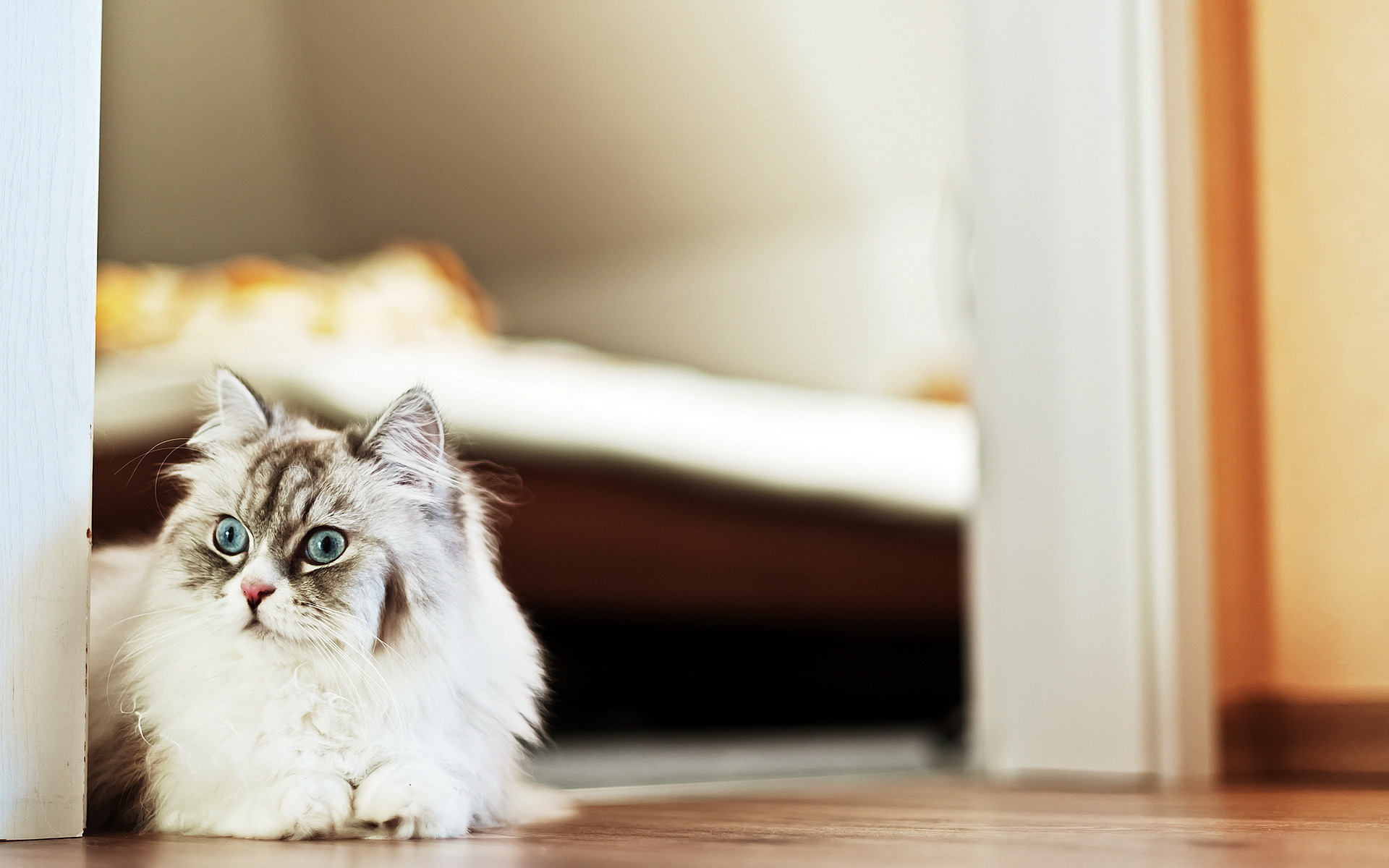 Пушистый красивый кот удивлённо смотрит - 1920x1200