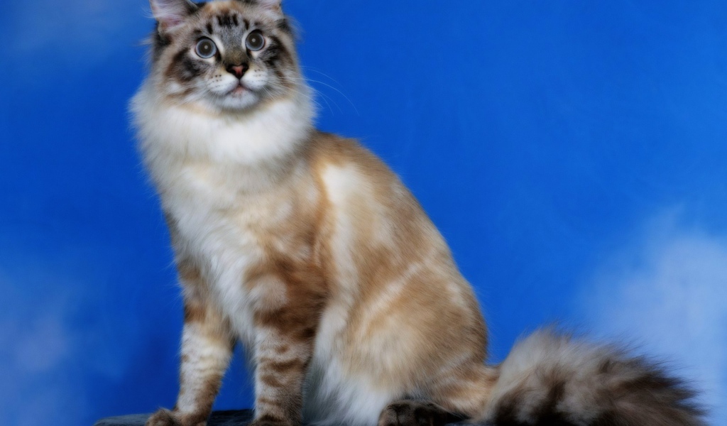 Кот с пушистым хвостом Обои для рабочего стола 1024x600