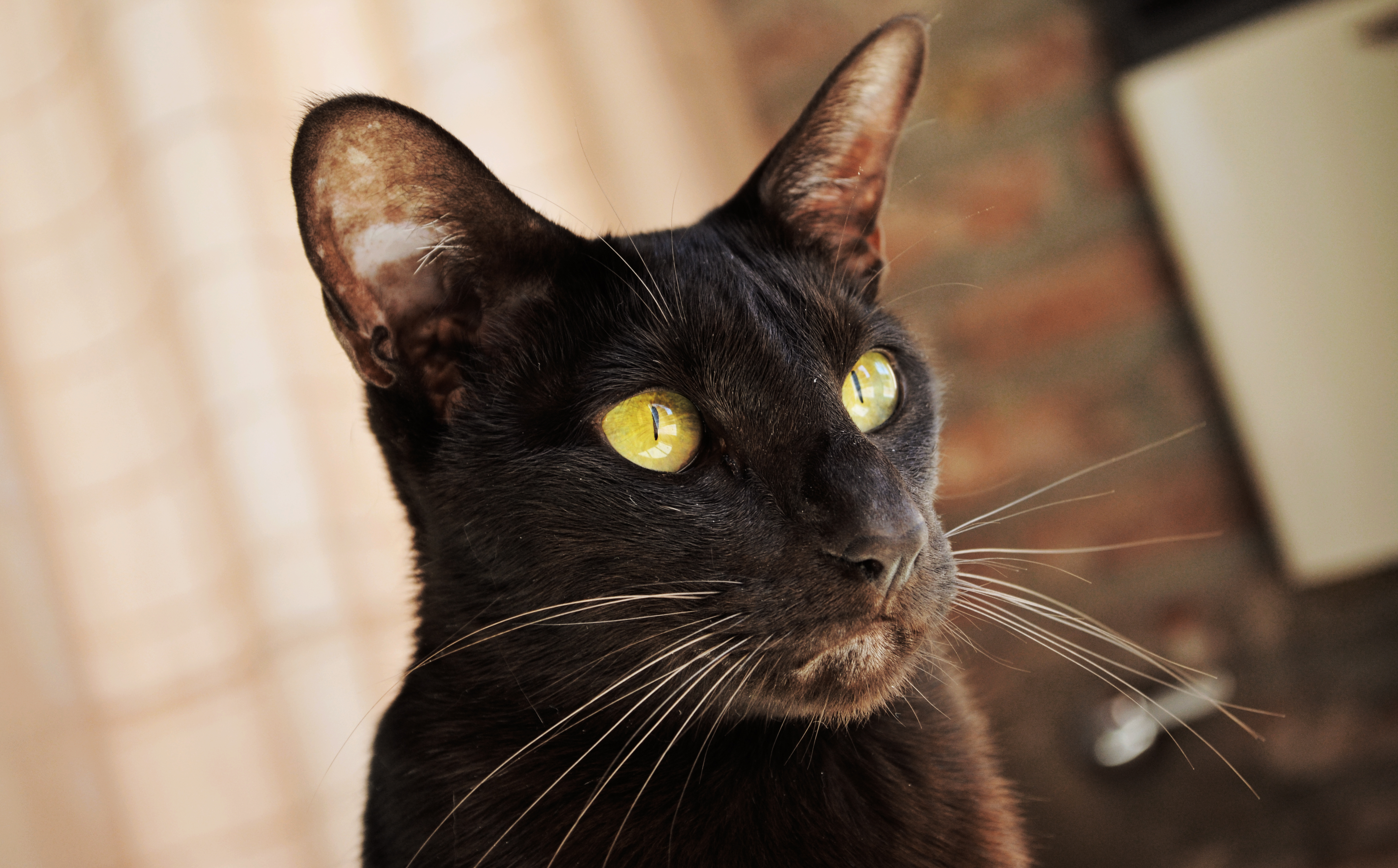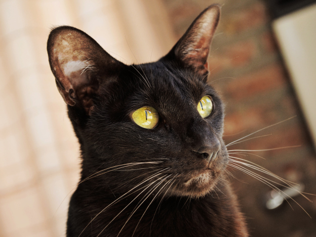 Обои: Желтоглазая ориентальная короткошерстная кошка