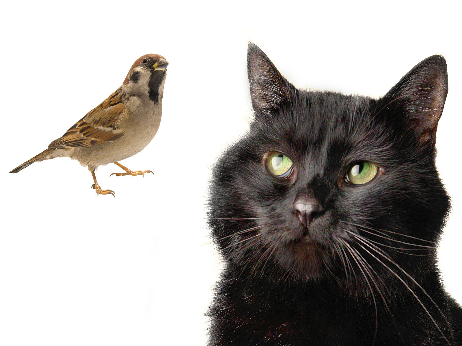 Бомбейская кошка смотрит на птичку - 1600x1200