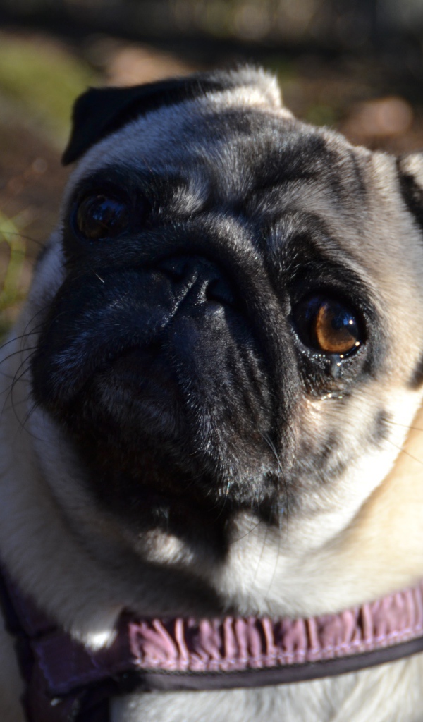 Морда собаки с грустными глазами породы мопс Обои для рабочего стола 600x1024