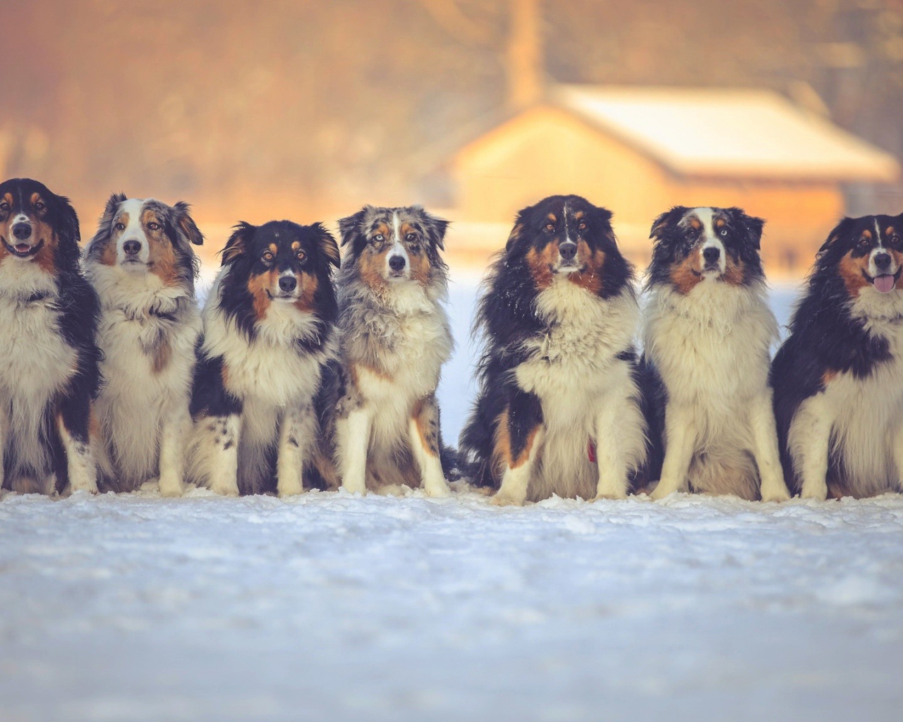 Собаки породы английская овчарка на снегу Обои для рабочего стола 1280x1024