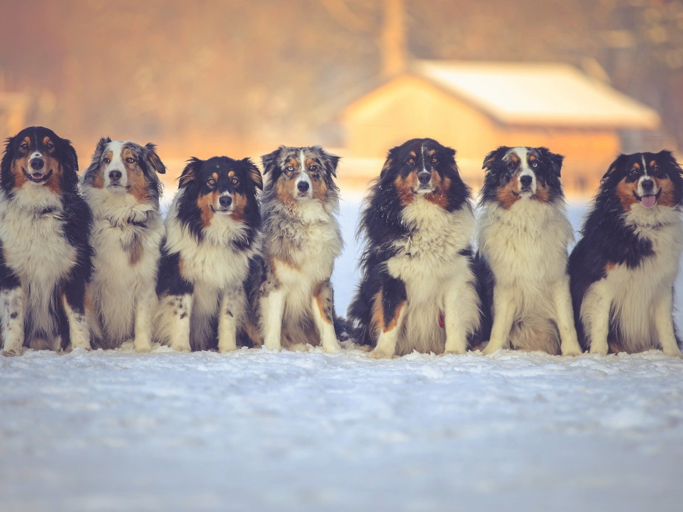 Собаки породы английская овчарка на снегу Обои для рабочего стола 1400x1050