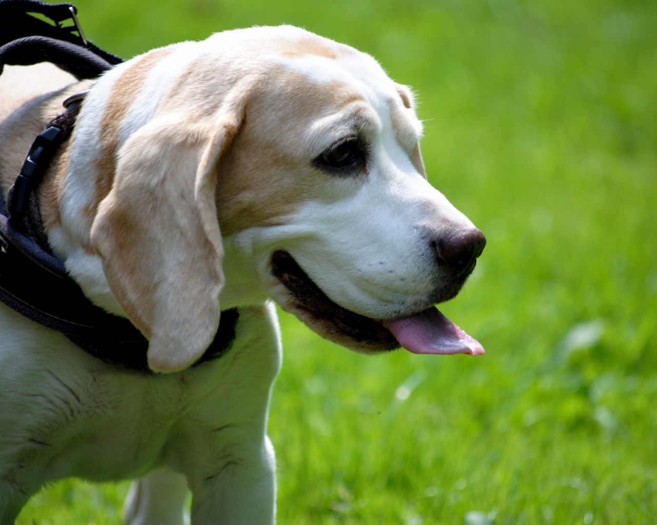 Пес поводырь породы бигль с высунутым языком - 3839x2592