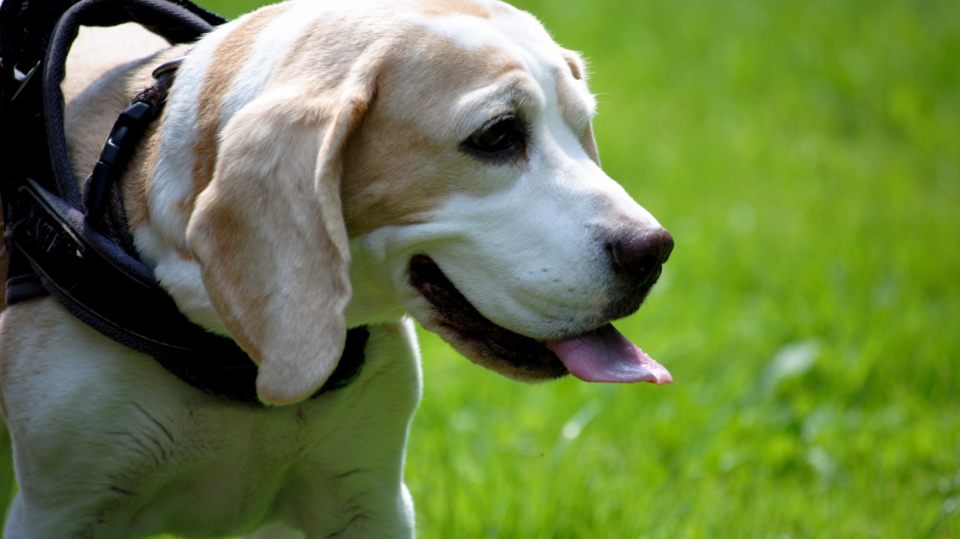 Пес поводырь породы бигль с высунутым языком - 3839x2592