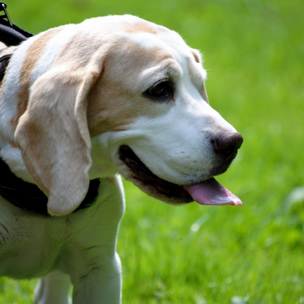Пес поводырь породы бигль с высунутым языком Обои для рабочего стола 1024x1024