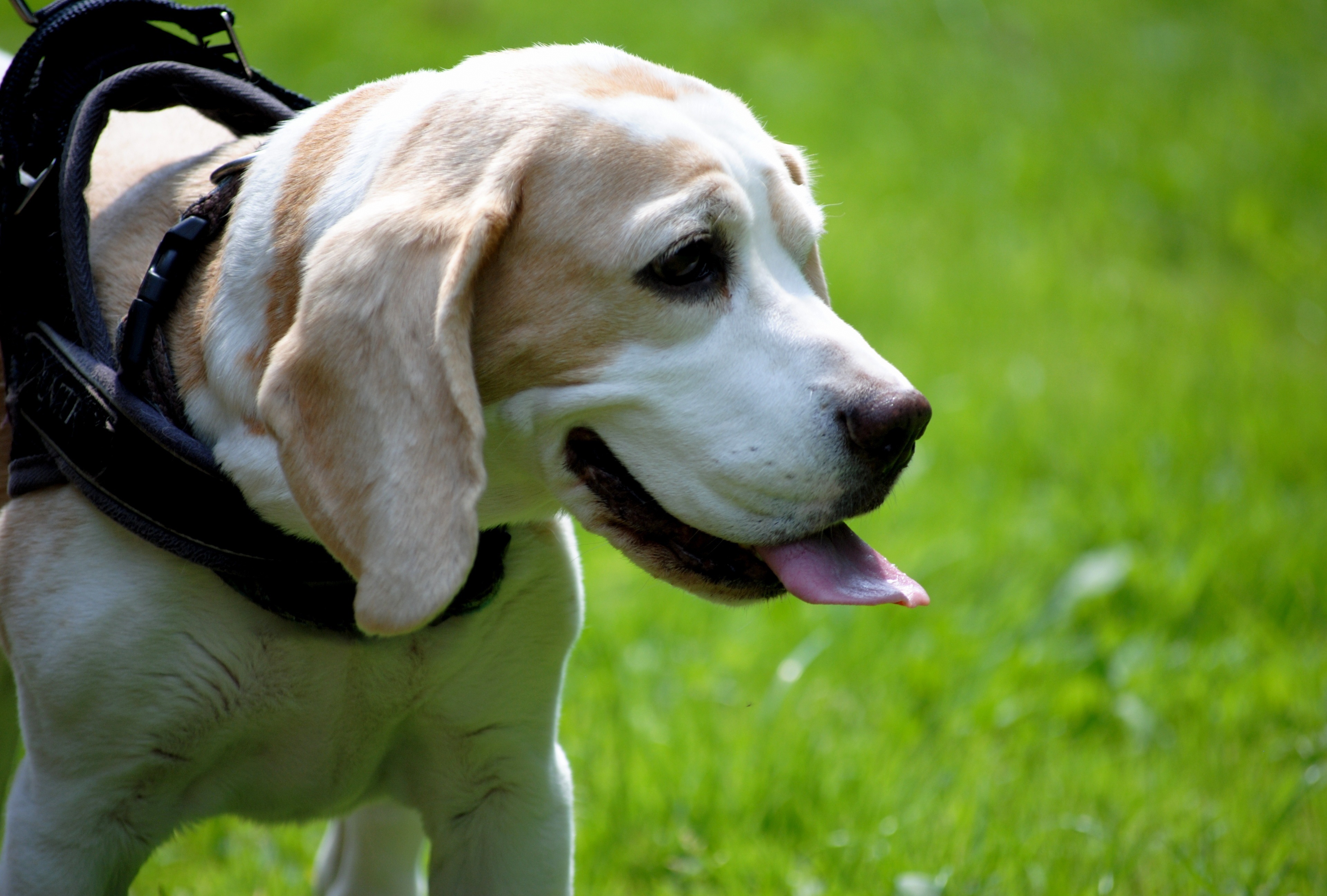 Пес поводырь породы бигль с высунутым языком - 3839x2592