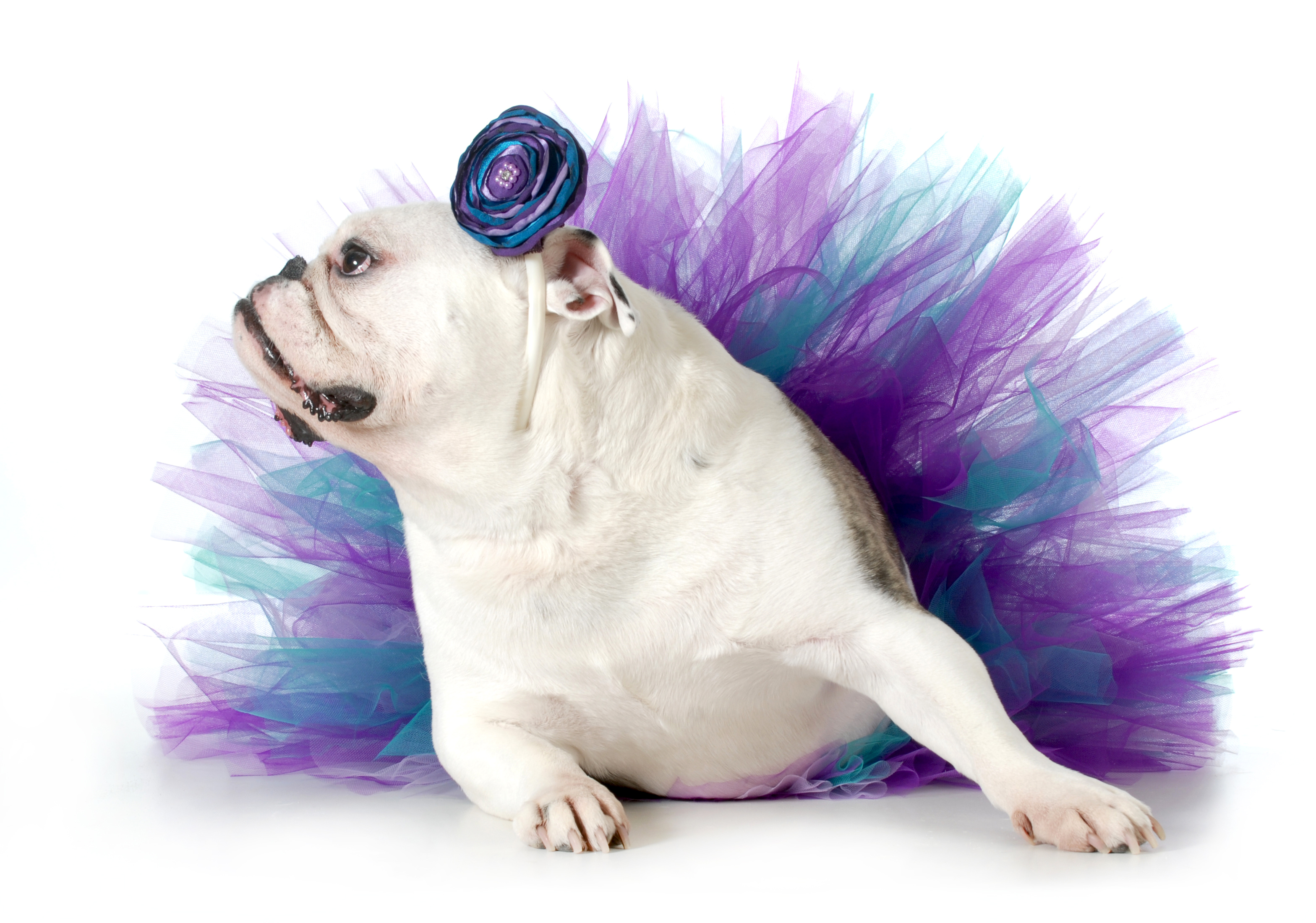 Английский бульдог в костюме на белом фоне - 3136x2200