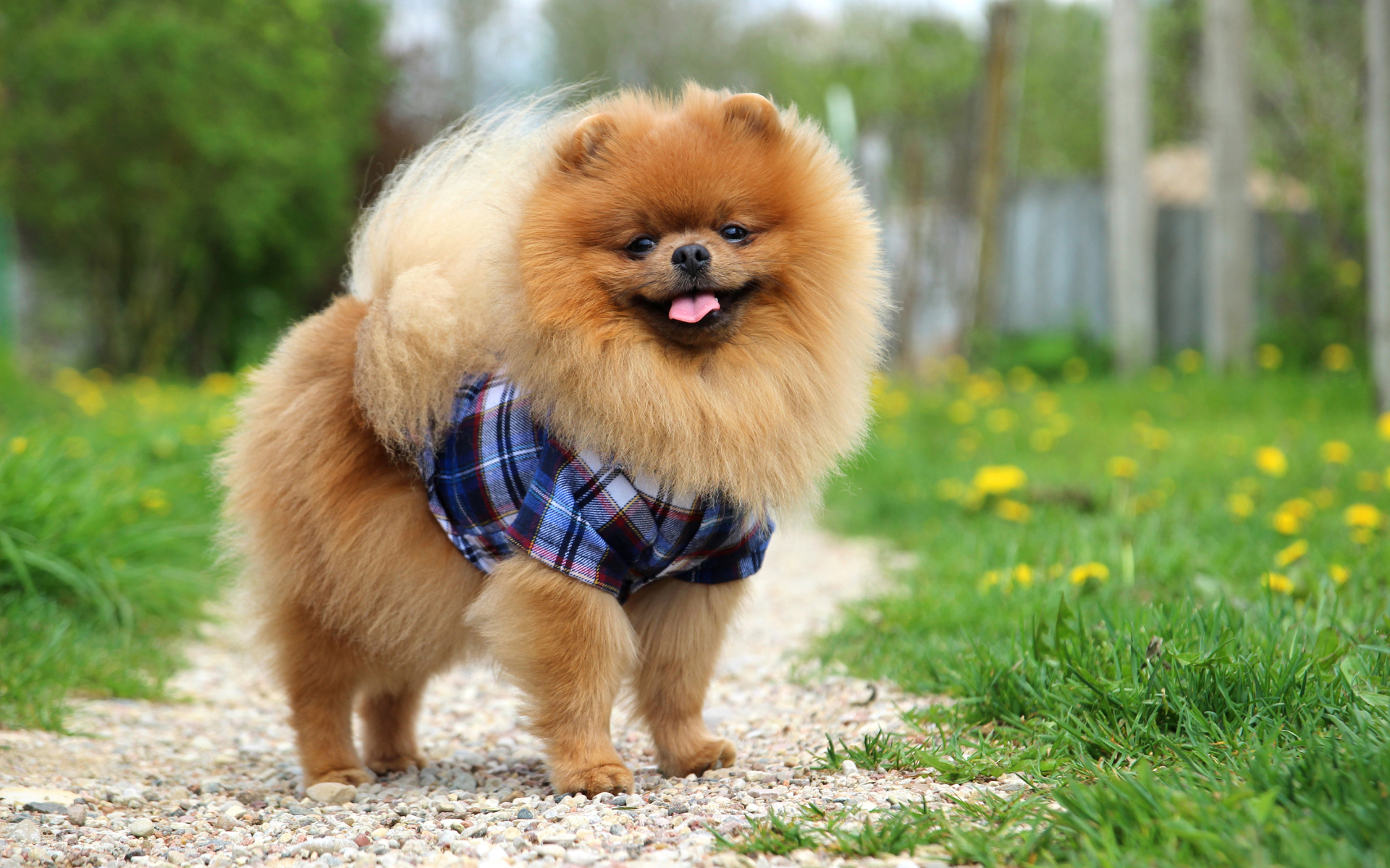 Смешной пушистый шпиц в рубашке - 3000x2000