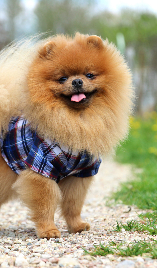 Смешной пушистый шпиц в рубашке Обои для рабочего стола 600x1024