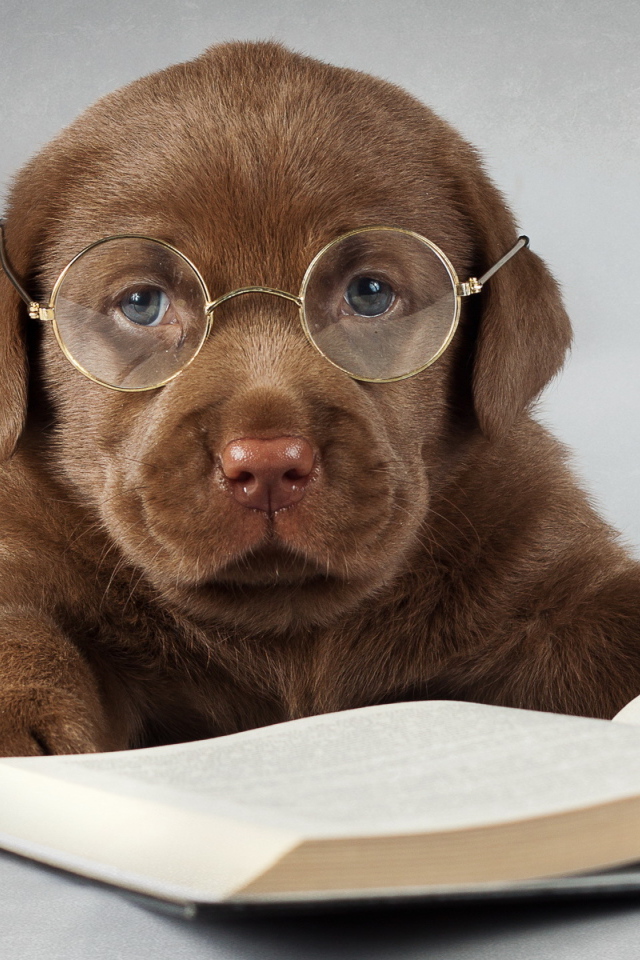 Щенок лабрадора в очках с книгой Обои для рабочего стола 640x960